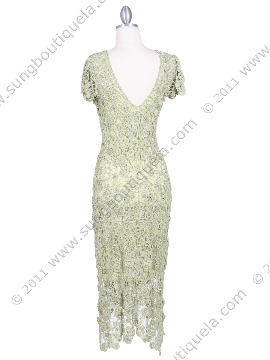 This adorable hand crocheted flower dress features deep V neckline with embroidery around the neckline. A line skirt completes the sexy buy yet sophisticated look. - Imported. - 100% rayon. - Full lining.
