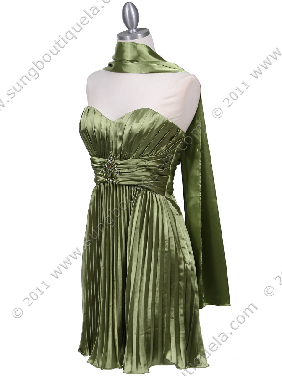This beautiful charmeuse strapless cocktail dress features sweetheart neckline with pleated bodice and skirt. Sparkling rhinestone adorns the waist. - Matching shawl included. - Back center zipper. - Padded bodice. - Approx. 31 in. from underarm to hem. - Fully lined. - 100% polyester. - Imported.