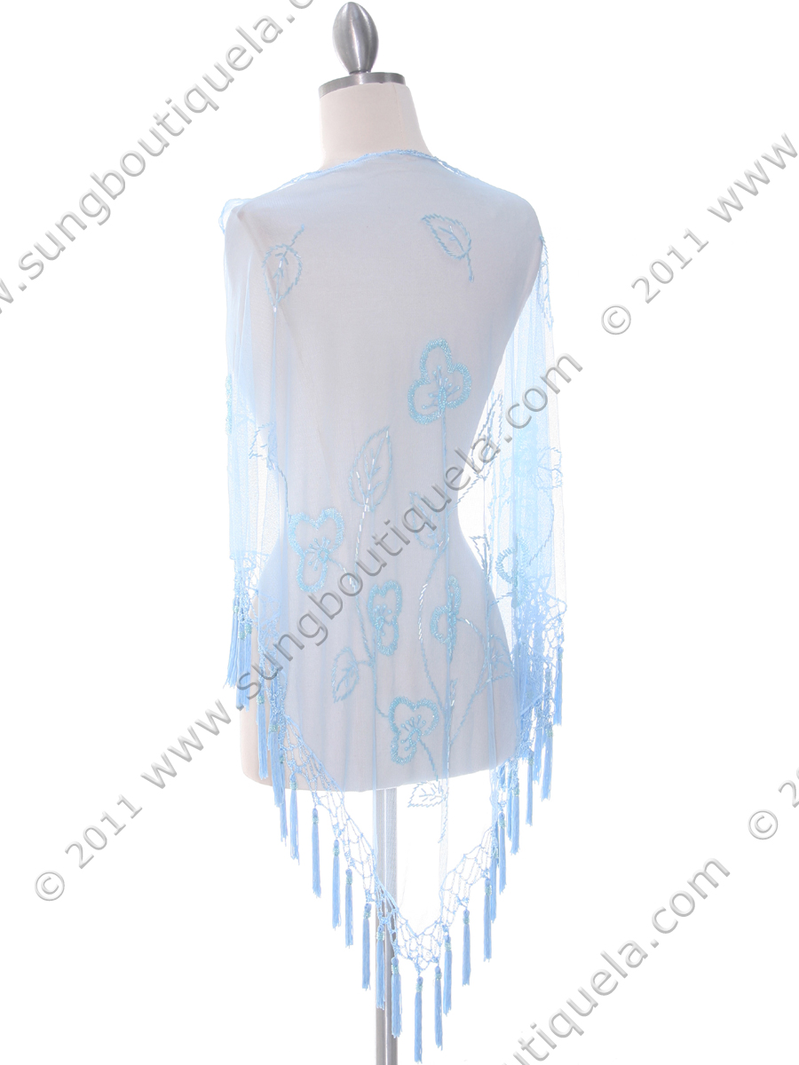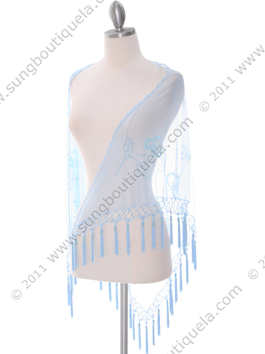 Beautiful handmade shawl with flower embroidery and fringe perfect for providing shoulder coverage for your evening or cocktail dresses. - Imported. - 65% polyester and 35% cotton. - Size: Approx. 54 x 41 inches.