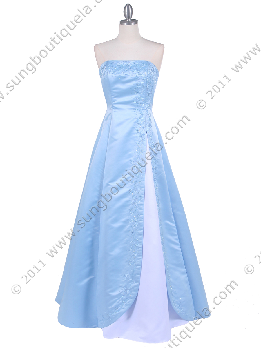 This beautiful evening gown features beautiful emborideries adorns the front and the side of dress. Simple neckline with built in boning for shape and support. Back zipper closure ensures the perfect fit. Simple and elegant. Matching shawl is included. Imported. Built-in cups. Shell and lining made from 100% polyester.