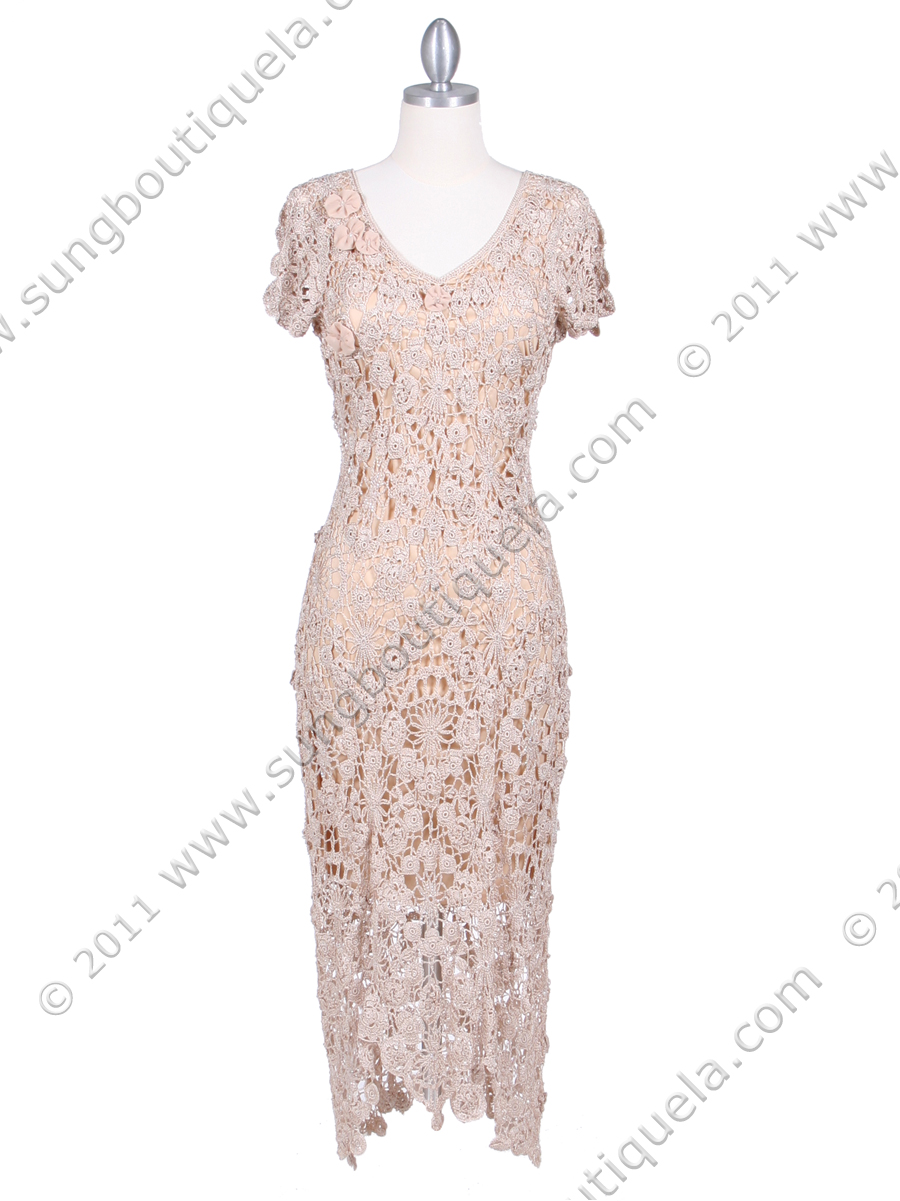 This adorable hand crocheted flower dress features deep V neckline with embroidery around the neckline. A line skirt completes the sexy buy yet sophisticated look. - Imported. - 100% rayon. - Full lining.