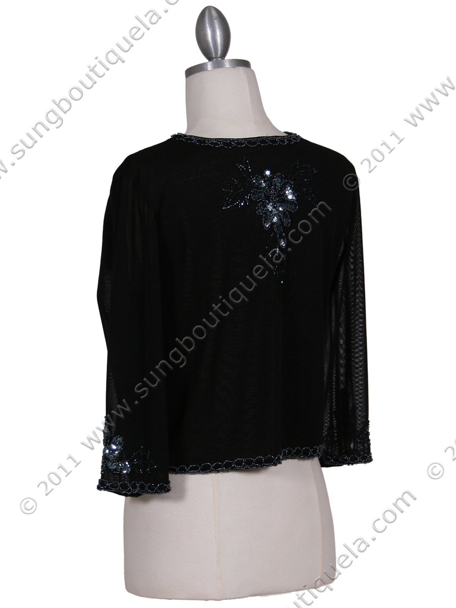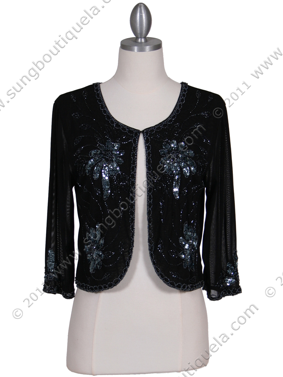 This elegnat bolero jacket features floral beads and sequins detail the front. Perfect for providing coverage for your evening or cocktail dresses . - Imported. - Made from 100% polyester.