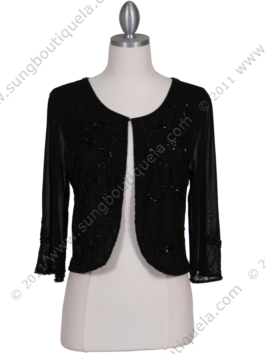 This elegnat bolero jacket features floral beads and sequins detail the front. Perfect for providing coverage for your evening or cocktail dresses . - Imported. - Made from 100% polyester.
