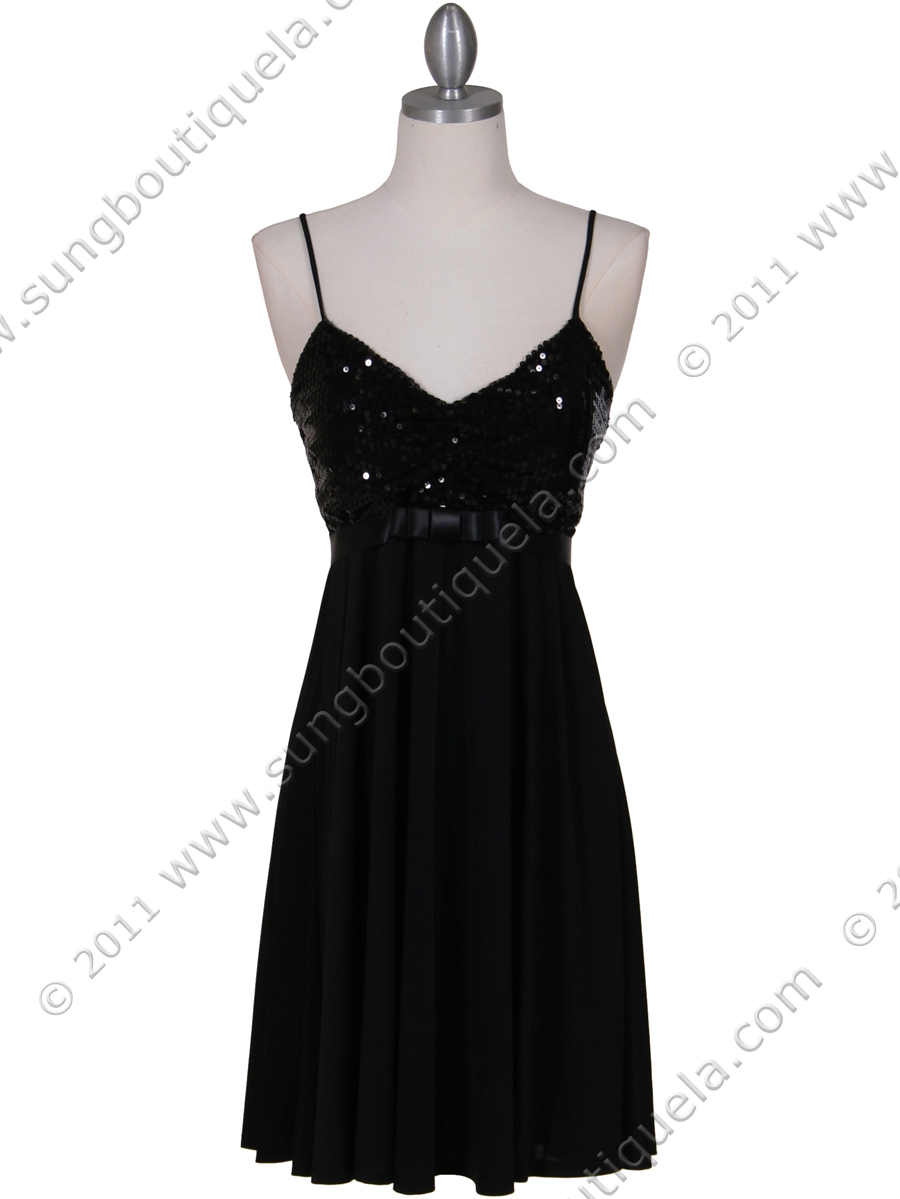 This chic party dress features spaghetti straps with sweetheart neckline. Sparkling sequins detail the bodice. Satin sash ties behind the back. - Slip-on; no zipper. - Padded bodice. - Approx. 32 in. from shoulder to hem. - 100% polyester. - Made in USA.