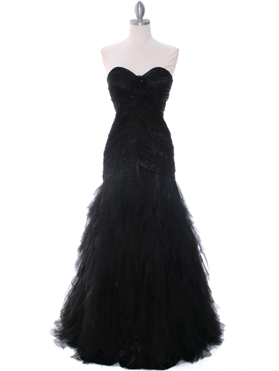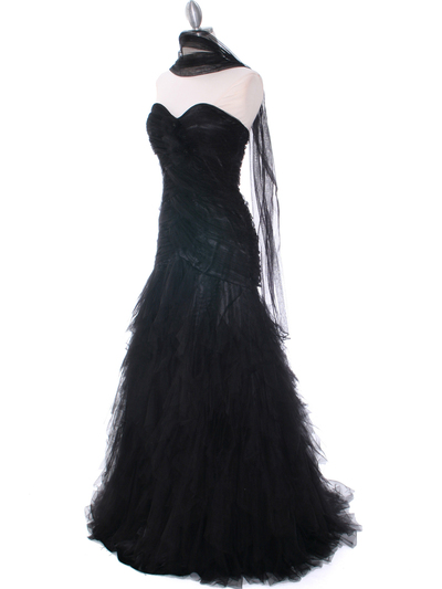 This elegant strapless evening dress features rosettes adorning sweetheart neckline and ruched lace overlay the fitted bodice. Soft flowing ruffles follow through the skirt finishes this charming look. - Matching shawl included. - Back zipper. - Padded bodice. - Approx. 54 in. from underarm to hem. - Fully lined. - 100% polyester. - Imported.