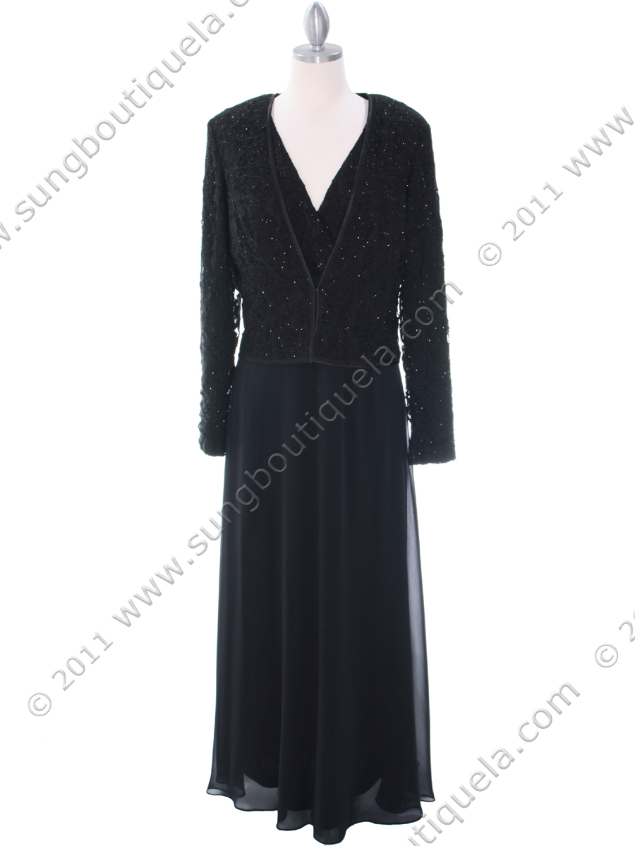 • 708 Black Lace Glitter Two Piece Mother of The Bride Dress - Black, Front View Medium