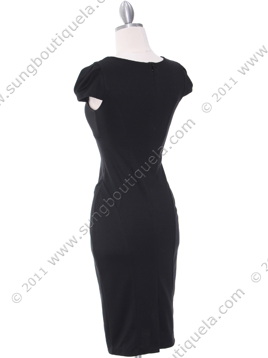 This fitted retro cut dress is perfect for day or night. The stretch in the fabric assures a curve hugging look. Sassy and fun. - Back zipper. - Approx. 40 in. from shoulder to hem. - 5 inch. slit on back hem. - 71% polyester, 24% rayon and 5% spandex. - Dry clean. - Made in USA.