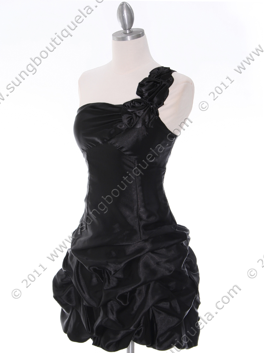 This beautiful charmeuse cocktail dress features rosettes adorning the shoulder. Simple neckline and bustled skirt finish the look. - Back zipper. - Padded bodice. - Approx. 34 in. from shoulder to hem. - Fully lined. - 97% polyester and 3% elastane. - Hand wash cold and cool iron. - Imported.