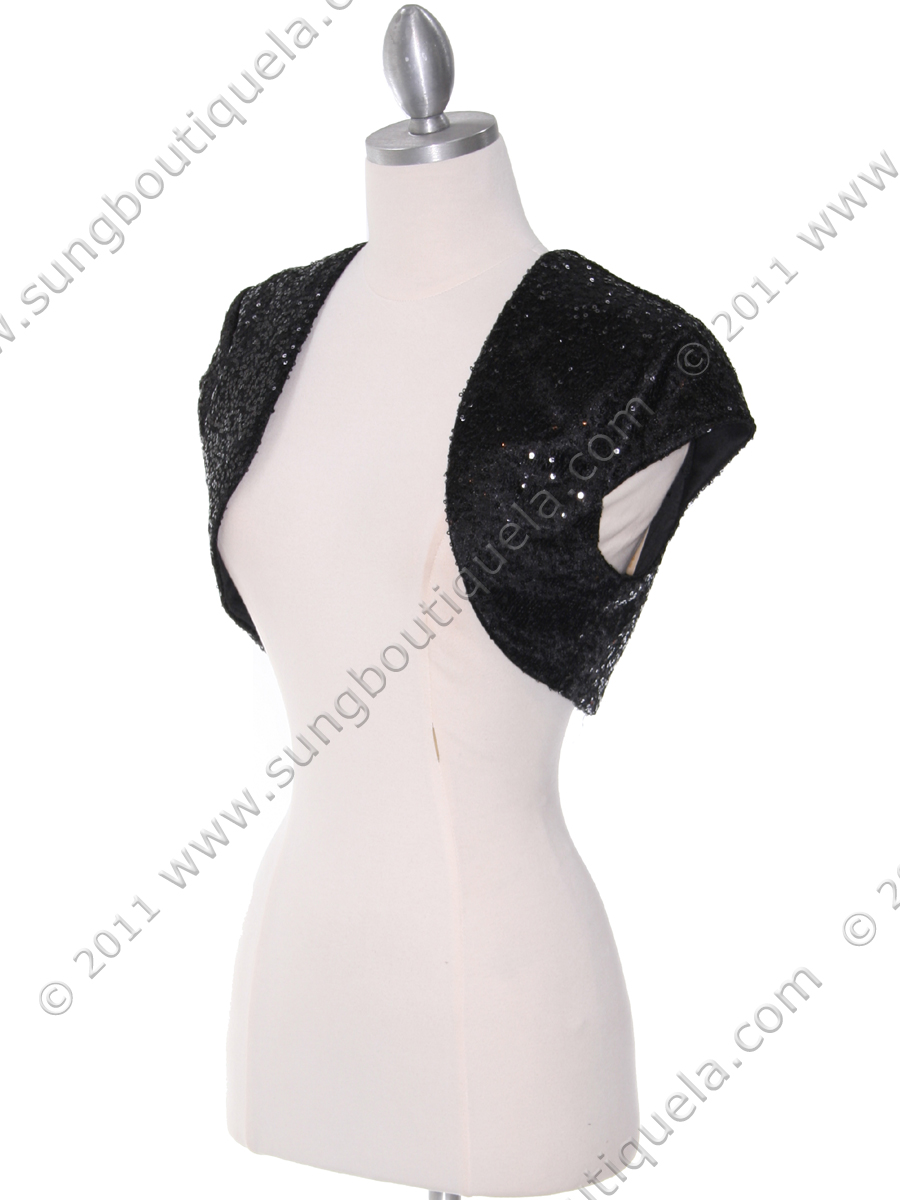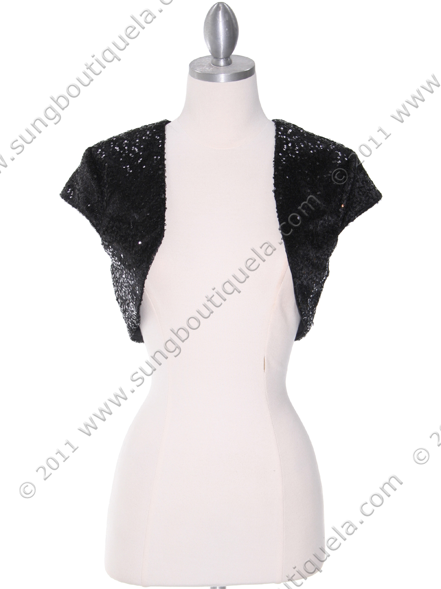 This stylish and chic bolero features shimmery sequins. Perfect for providing shoulder coverage for your evening or cocktail dresses. - Approx. 12 in. from shoulder to hem. - 100% polyester. - Hand wash. - Made in USA.