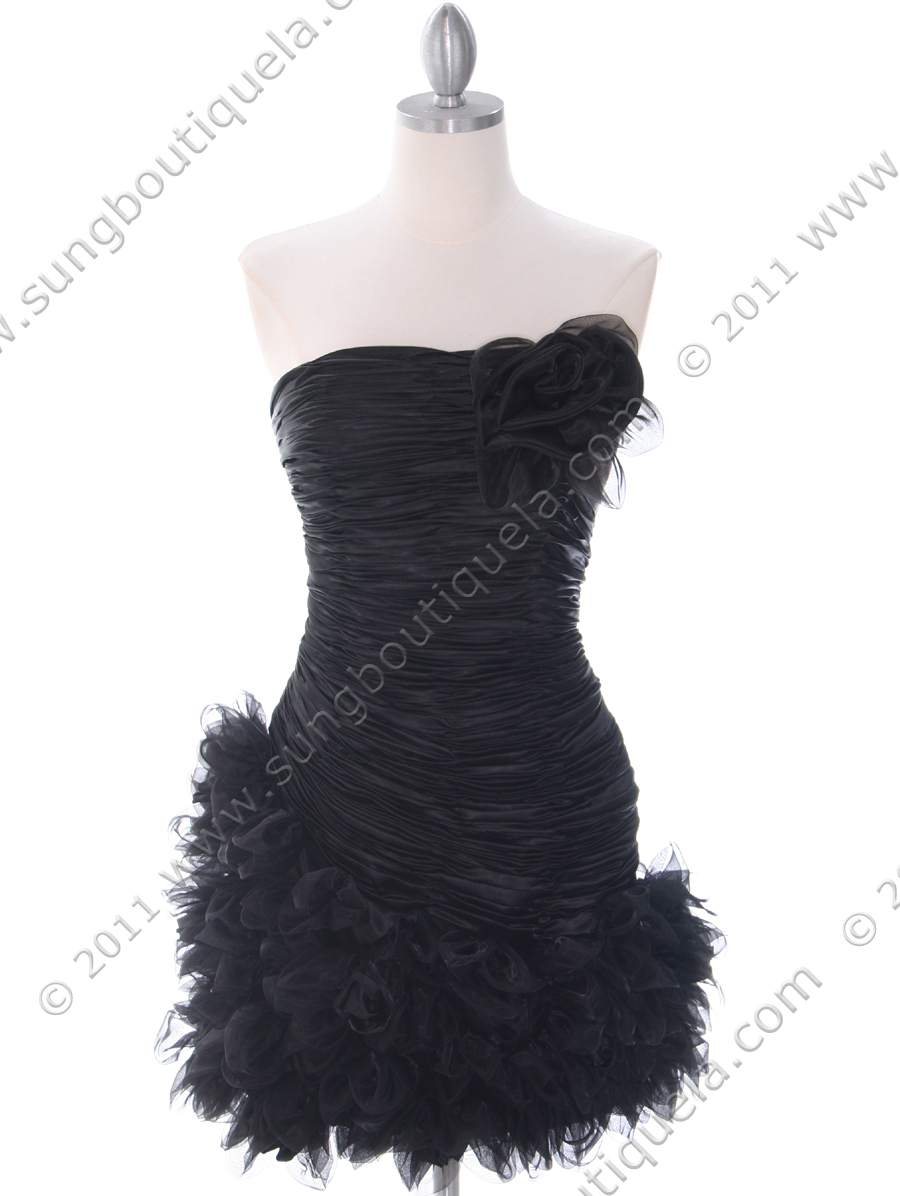 This elegant cocktail dress features rosette adorns the front. Simple neckline, figure-flattering bodice with beautiful floral design details the hem. - Matching shawl included. - Built in cup. - Boned bodice. - Side zipper. - Approx. 25 in. from underarm to hem. - 100% polyester. - Imported.