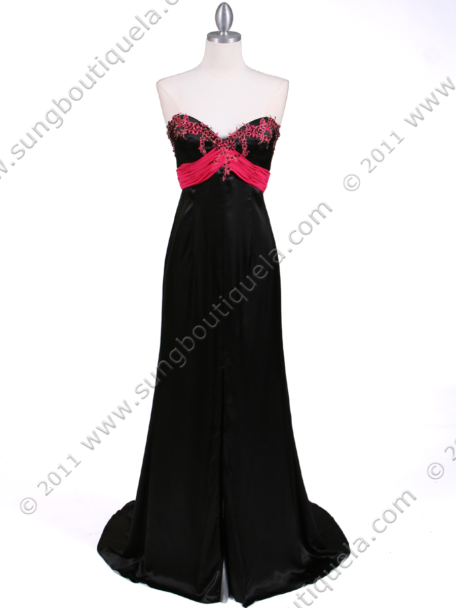 This elegant satin evening gown features flowery embroidery and beads detail the front. Nonadjustable chiffon strap adorns empire waist. A small back train adds a sense of elegant. Matching shawl included. Imported. 100% polyester. Removable straps included.