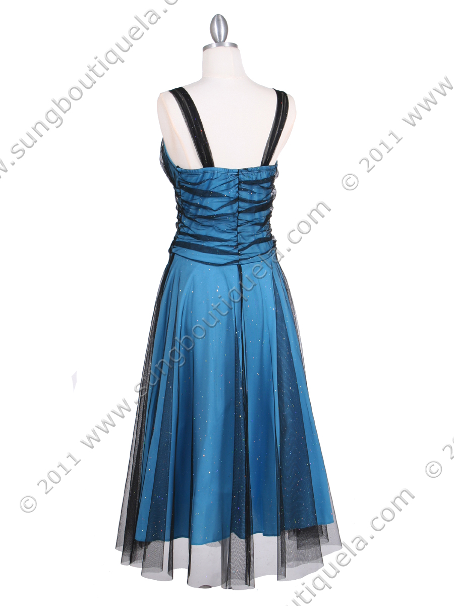• 063 Black/Turquoise Glitter Tea Length Dress - Black Turquoise, Back View Medium