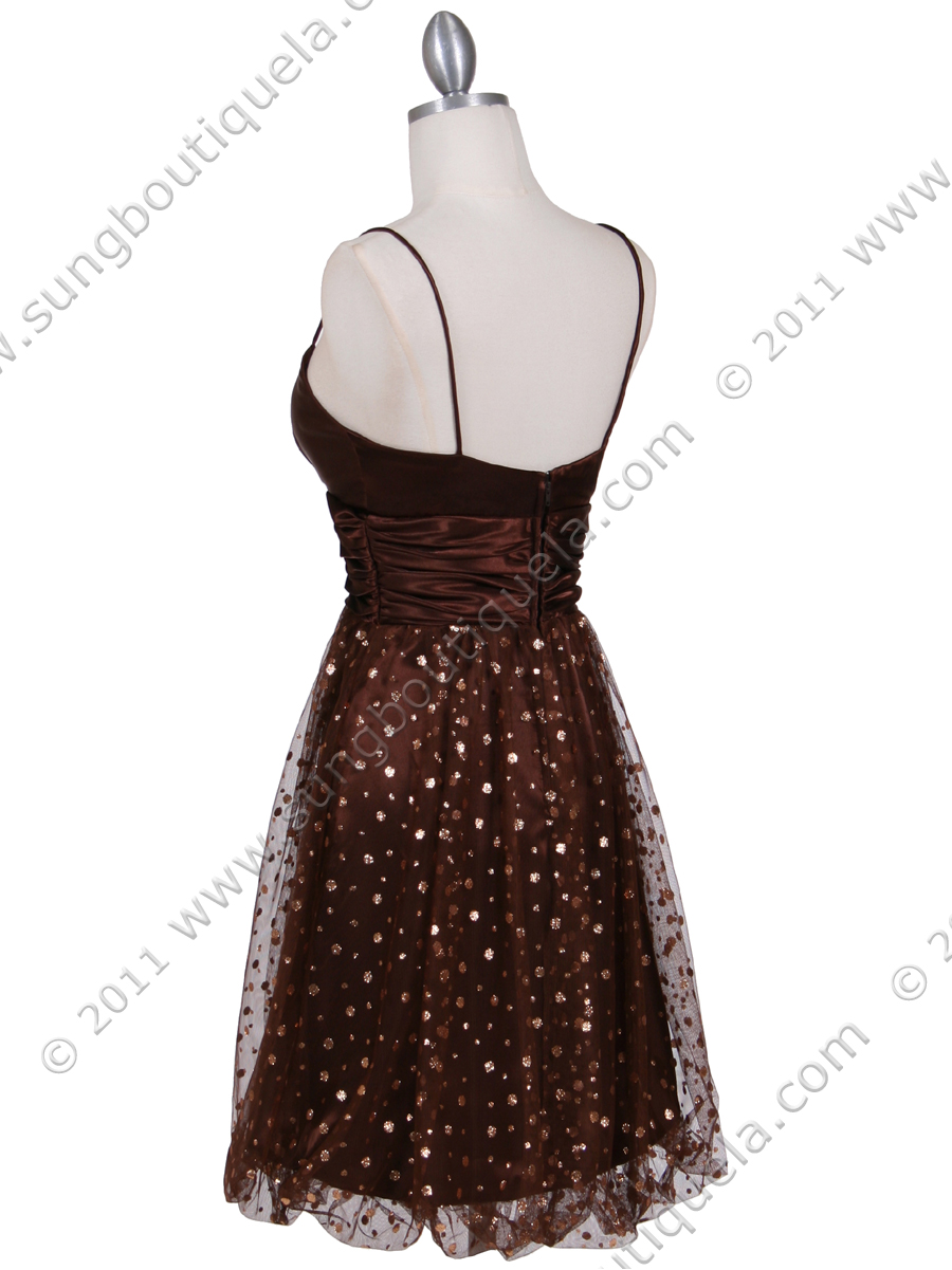 This beautiful cocktail dress features spaghetti straps with sweetheart neckline. Wide pleated waist with glittering polka dot patterned sheer mesh dress sparkles over a same tone charmeuse lining finished with subtly bubble hem. Made in USA. 100% polyester. Back center zipper. Matching shawl included.