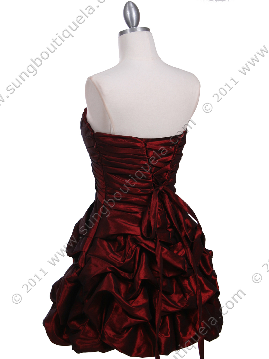 This beautiful taffeta strapless cocktail dress features sparkling sequins and beads adorn the sweetheart neckline. Pleated bodice with crisscross back strap ensures the perfect fit. The bustled skirt finishes the look. - Matching shawl included. - Approx. 27 in. from underarm to hem. - 100% polyester. - Imported.