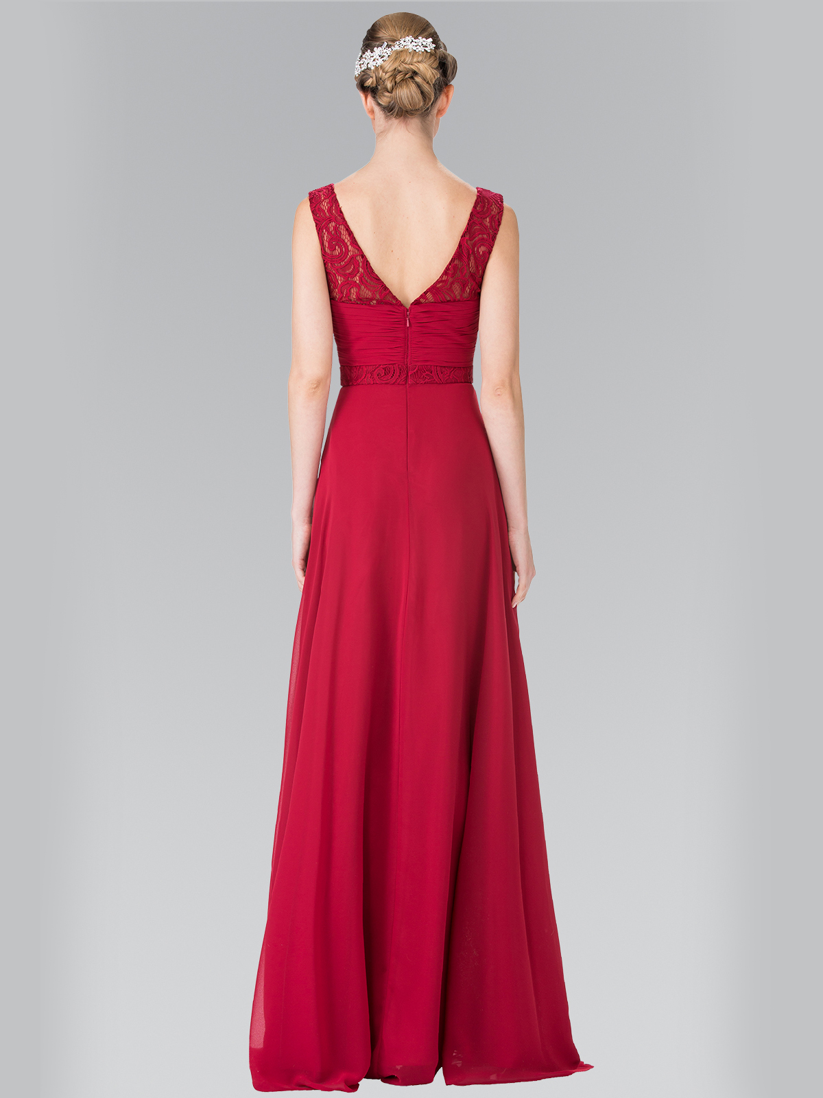 This simple and elegant bridesmaid dresses features lace shoulder straps with pleated bodice. A-line floor length chiffon long skirt completes the look. - Back zipper. - Chiffon. - Approx. length 60" from shoulder to hem.
