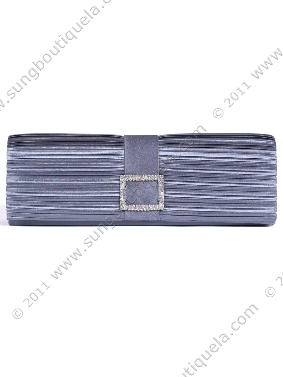 Beautiful pleated satin evening bag adorned with sparkling rhinestone buckle. Available in Black, Dark Grey, Red, and Silver. - Dimensions (inches): 11 W x 4 H x 2 D. - Braided shoulder strap: 22 inches. - Front flap with magnetic closure. - Imported.