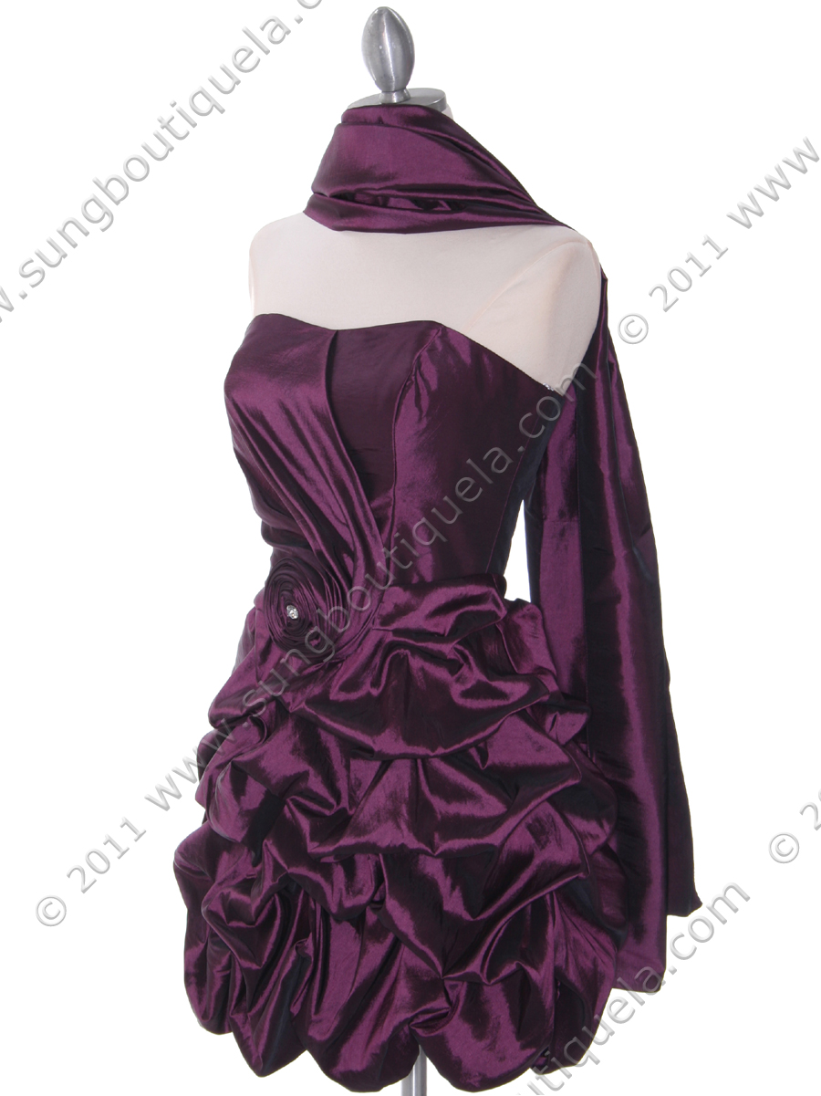 This sassy strapless homecoming dress features pleated bodice with rosette design adorns the waist. Bustled skirt finished the look. - Matching shawl included. - Back zipper. - Approx. 26 in. from underarm to hem. - 100% polyester. - Imported.