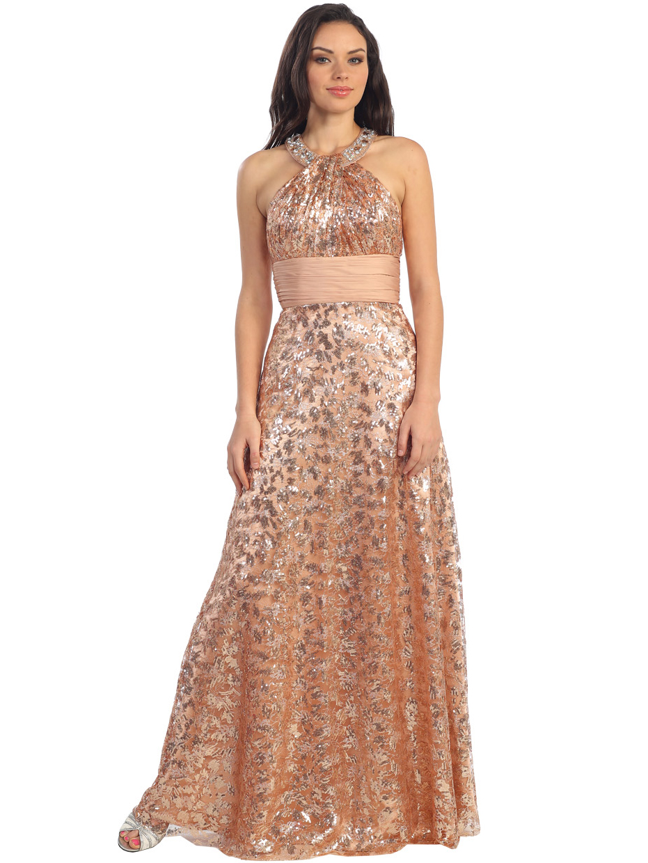 Be the talk of the town with this eye-catching gown; the halter neck and shimmery lace fabric is just perfect for those glamorous occasions. The stunning crystals on the neckline add a touch of sophistication and oomph to the gown--it's a must-have for your special occasion event. - Zipper entry. - Built in cup. - Approx. 60 in. from shoulder to hem. - Fully lined. - 100% polyester. - Imported.