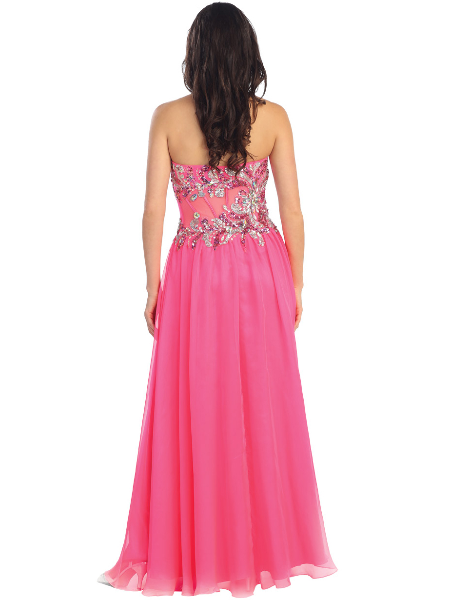 It's time to shine and make your fashion statement with this hot, bubbly pink gown. With shimmery sequins and a strapless netted bodice with boning support, this gown is perfect for that extra special occasion you've been waiting to get to all season! The delicate sequin embroidery on the fitted bodice speaks feminine appeal! - Zipper entry. - Built in cup. - Approx. 60 in. from shoulder to hem. - Fully lined. - 100% polyester. - Imported.