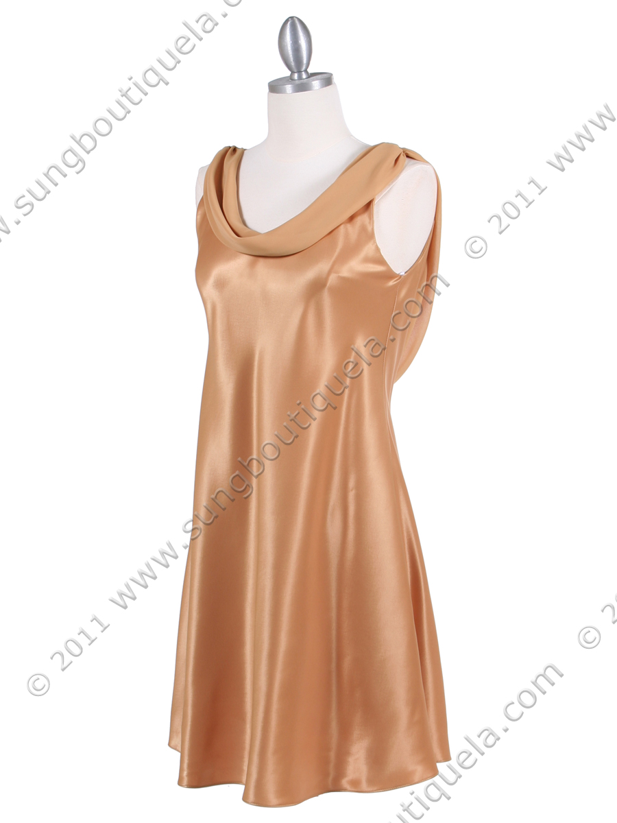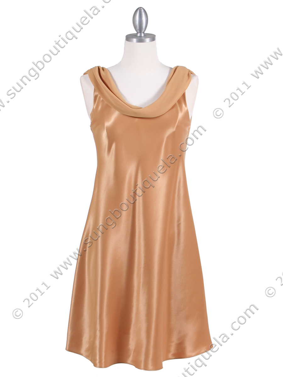 This chic party dress features front and low back chiffon draped neckline with removable dazzling chain in lustrous charmeuse fabric. This design is flattering to almost any figure and the slight sheen fabric brings out the glow in every complexion. No zipper; Slip on. Made in USA; 100% polyester.
