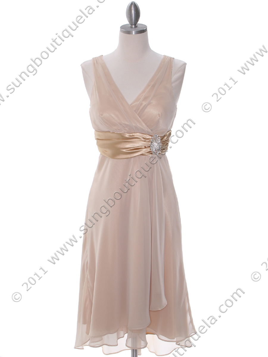 This beautiful chiffon cocktail dress features sparking pin adorns the waist. High low hem finishes the elegant look. - Back zipper. - Approx. 42 in. from shoulder to hem. - 100% polyester. - Made in USA.