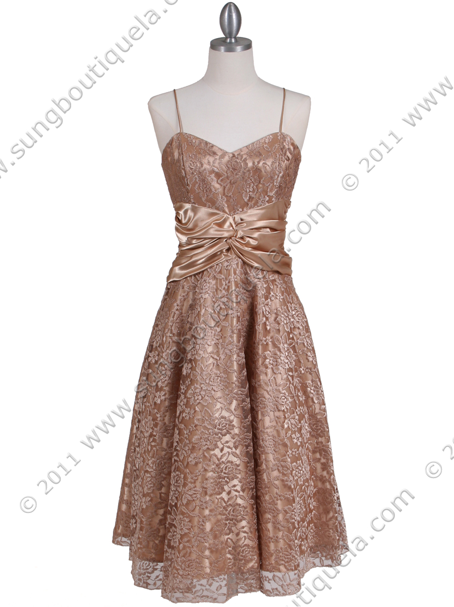 This beautiful tea length dress features spaghetti straps with sweetheart neckline. Ruched sash details the waist. Tulle-trimmed lining adds extra volume. - Matching shawl included. - Back center zipper. - Boned bodice. - Approx. 44 in. from shoulder to hem. - Fully lined. - 100% polyester. - Made in USA.