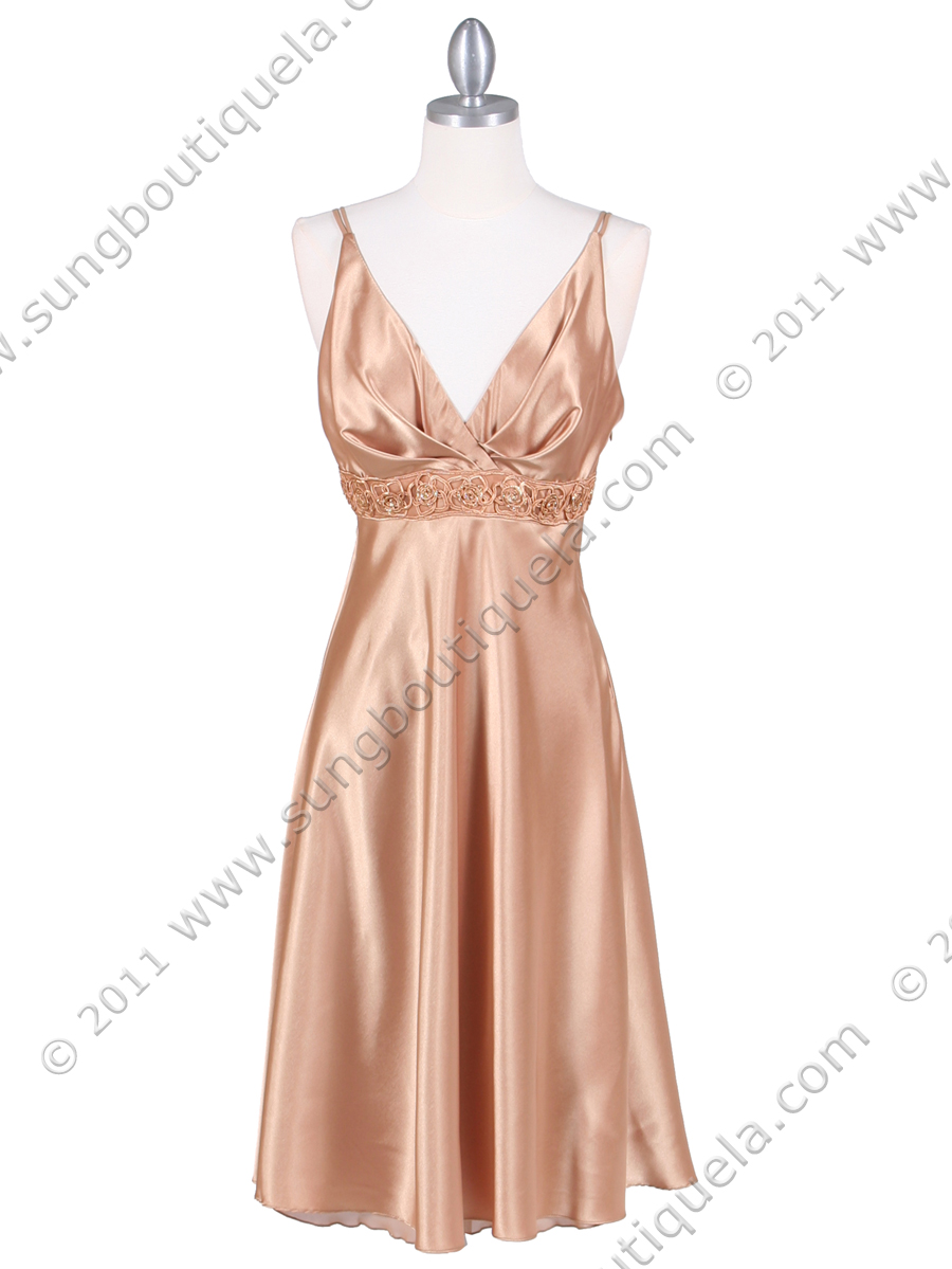 This elegant silky satin cocktail dress features spaghettis straps with gathered, surplice bodice. Floral pattern lace empire waist flatter above a silky skirt, beautiful and elegant. Side zipper entry. Made in USA; 100% polyester matching shawl is included.