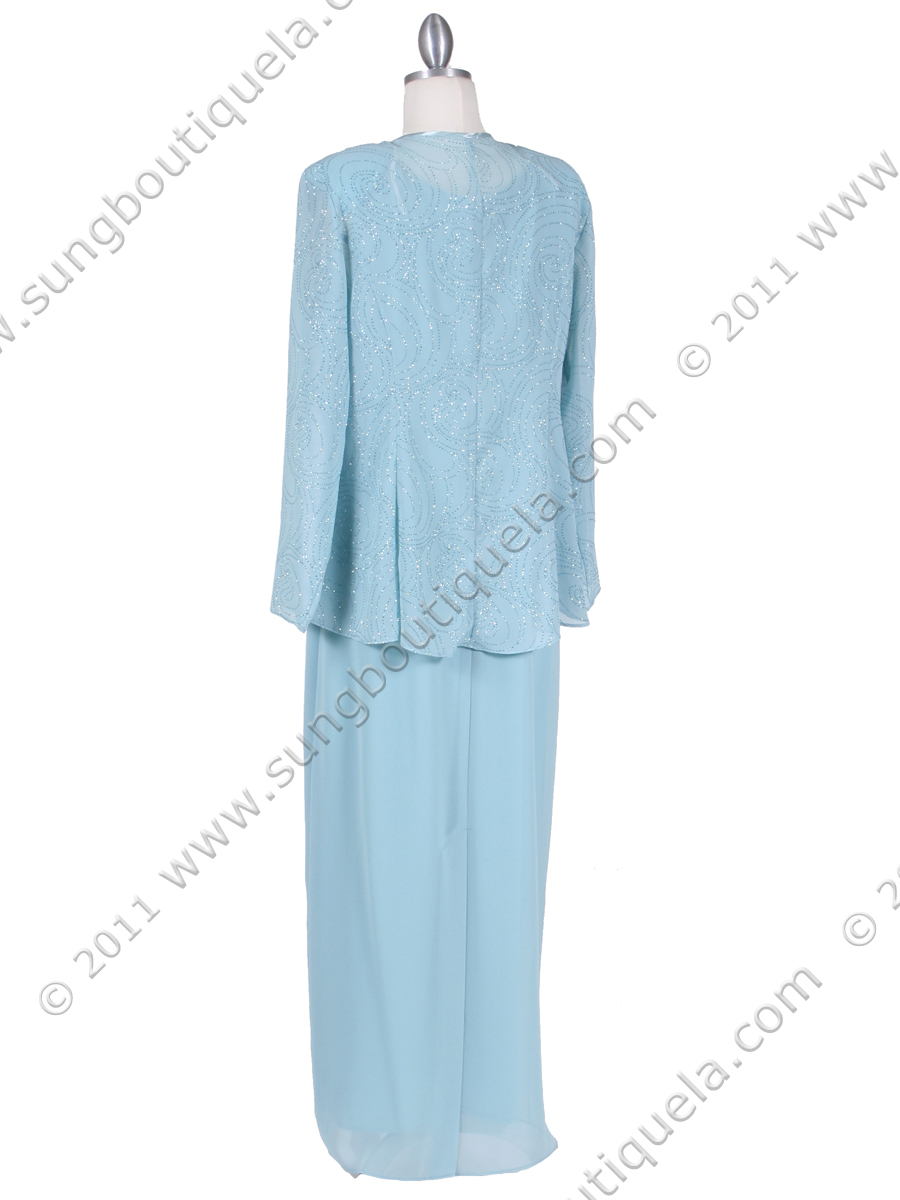 This beautiful two piece dress is styled with a floor-length tank dress. Shimmery textured jacket closes with a sparkly rhinestone clasp. - 100% polyester. - Imported. - Back zipper entry.