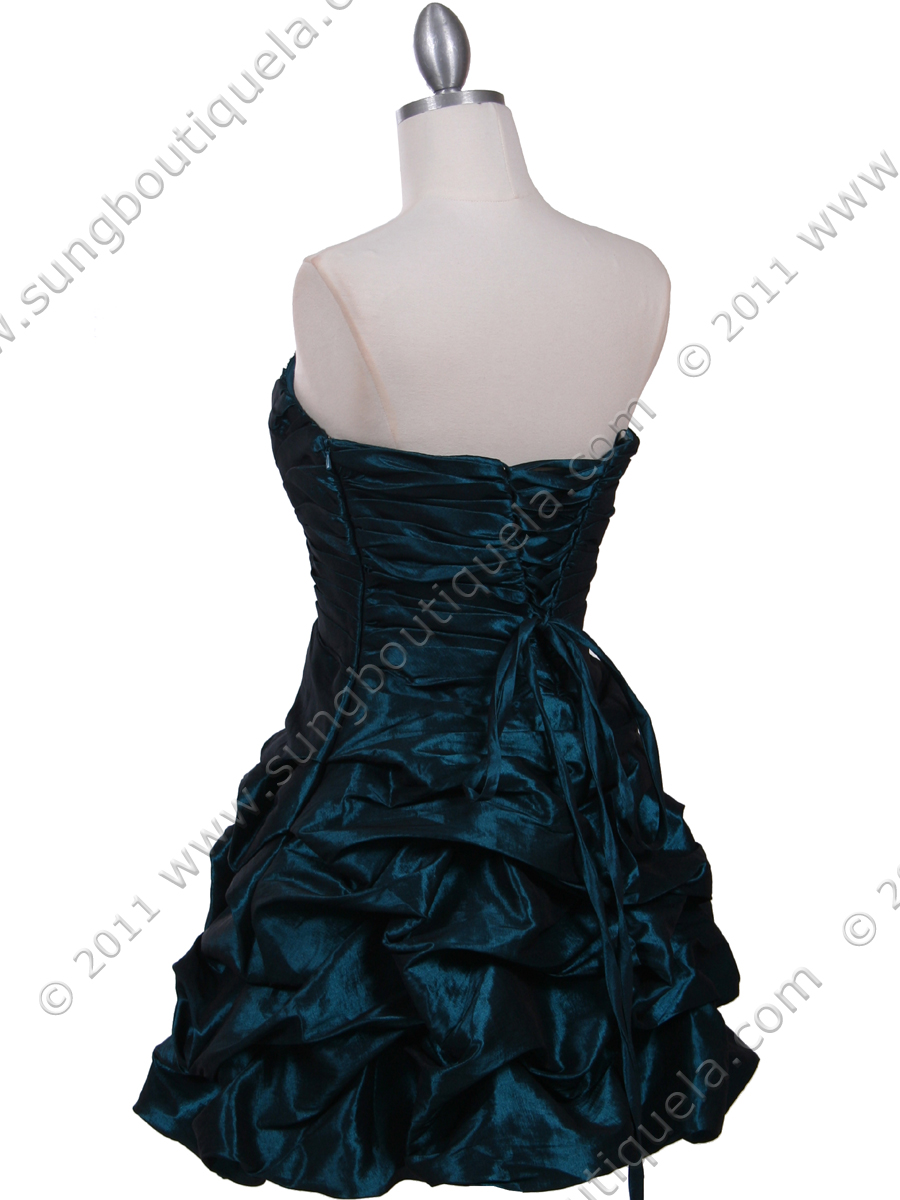 This beautiful taffeta strapless cocktail dress features sparkling sequins and beads adorn the sweetheart neckline. Pleated bodice with crisscross back strap ensures the perfect fit. The bustled skirt finishes the look. - Matching shawl included. - Approx. 27 in. from underarm to hem. - 100% polyester. - Imported.
