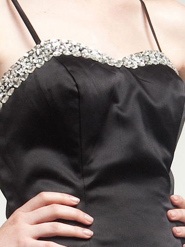 Elegant and beautiful this evening dress features a sweetheart neckline with a jeweled and beaded trim. The look is completed with a mermaid style flared skirt and a crisscross back. -Zipper entry. -Approx. 63 inches from shoulder to hem. -Fully lined. -Polyester. -Imported.