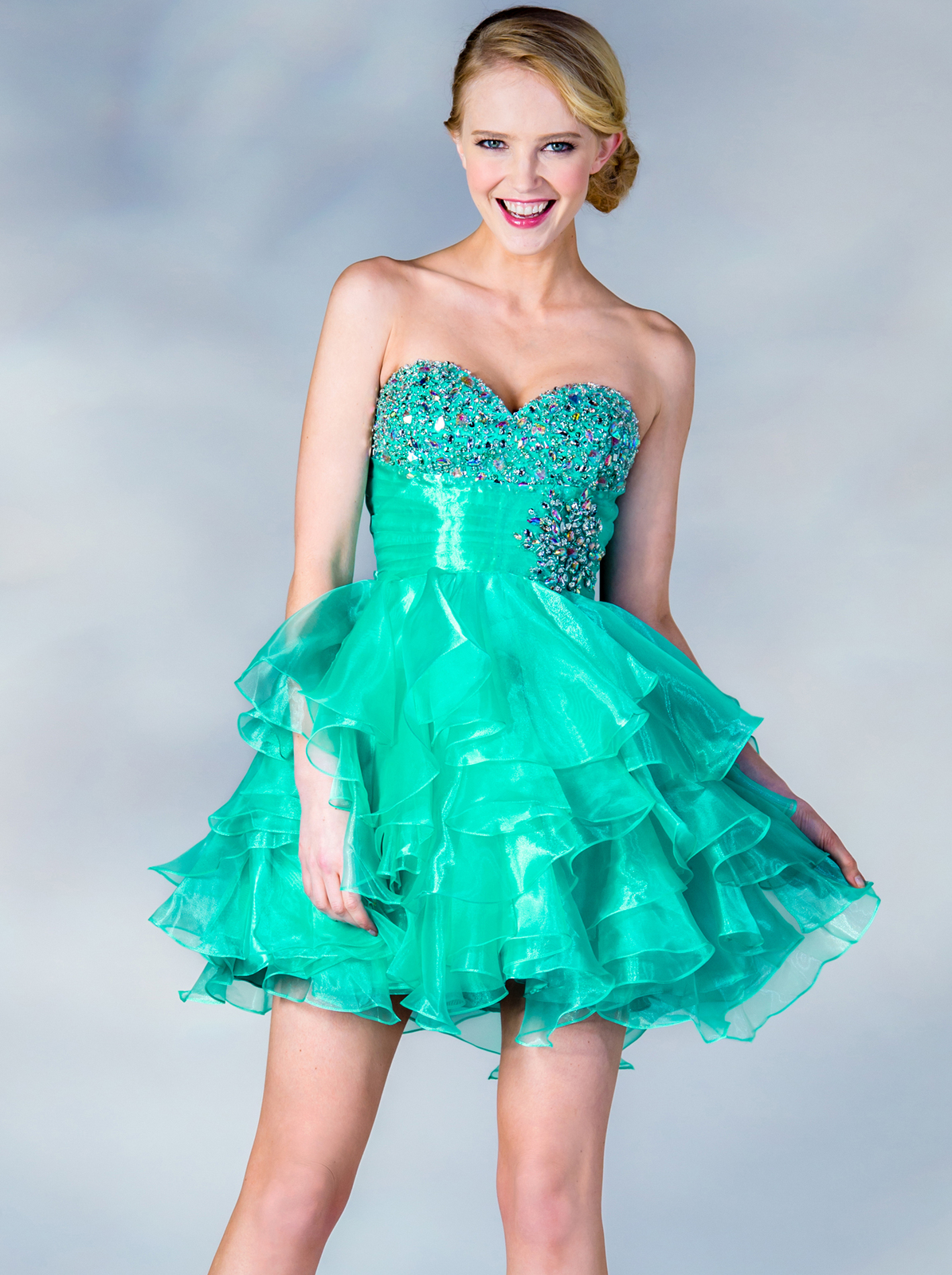 This gorgeous party dress features a sweetheart neckline with jewel and bead adornments along the bustline. The bodice and layered skirt are brought together by a jeweled floral detail. -Zipper entry. -Approx. 36 inches from underarm to hem. -Fully lined. -Polyester. -Imported.