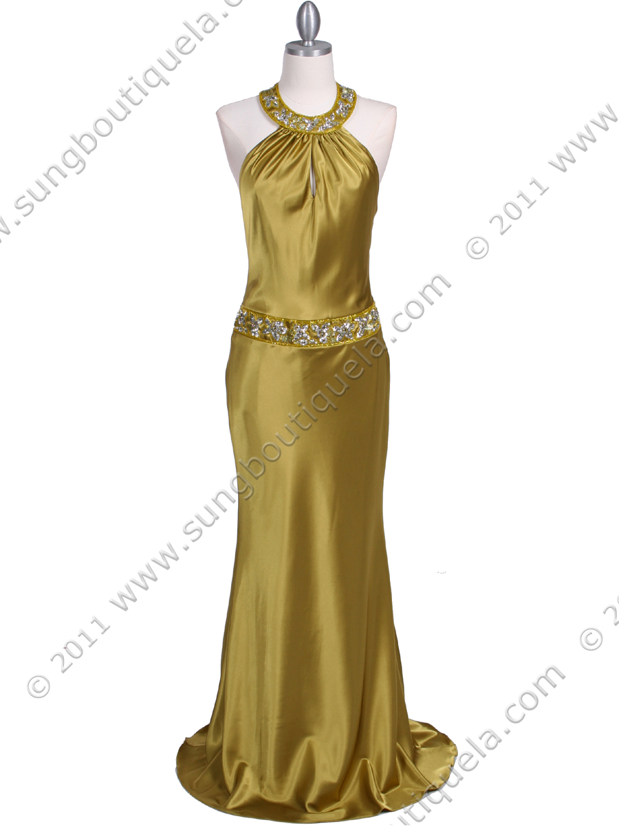 • 4838 Mustard Beaded Evening Dress - Mustard, Back View Medium