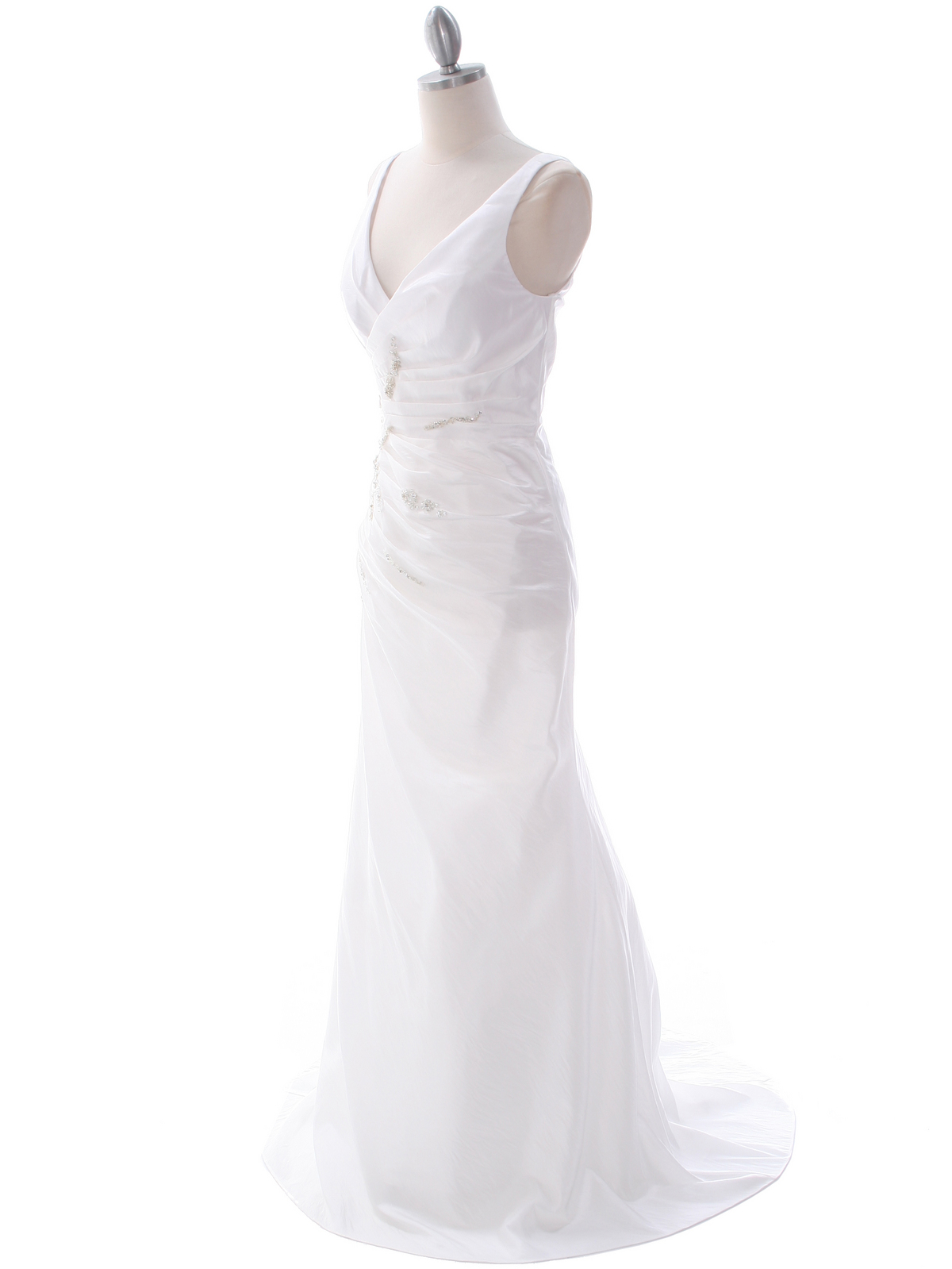 This elegant evening dress features beautiful V neckline with sparkling sequins and beads detail the pleated bodice. Slight train. - Back zipper. - Approx. 60 in. from shoulder to hem. - Approx. 66 in. from shoulder to back. - 100% polyester. - Imported.