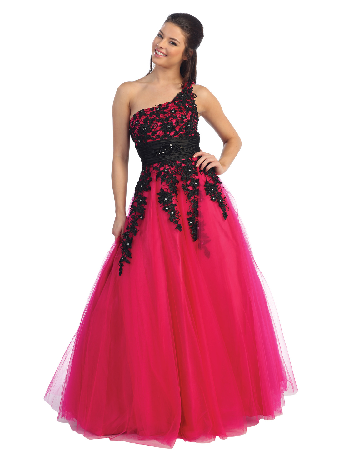 This stunning one shoulder evening gown features a floral lace overlay covering the bodice. A satin band and beaded detail embellish the waist while a long tulle skirt completes the look. - Zipper entry. - Built in cup. - Approx. 60 in. from shoulder to hem. - Fully lined. - 100% polyester. - Imported.