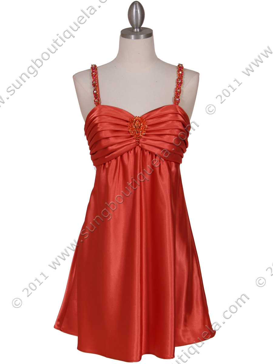 This gorgeous satin cocktail dress features colorful rhinestone straps with sweetheart neckline. Pleated bodice with sparkling rhinestone pin adorns the front. - Matching shawl included. - Side zipper. - Padded bodice. - Approx. 32 in. from shoulder to hem. - Fully lined. - 100% polyester. - Imported.