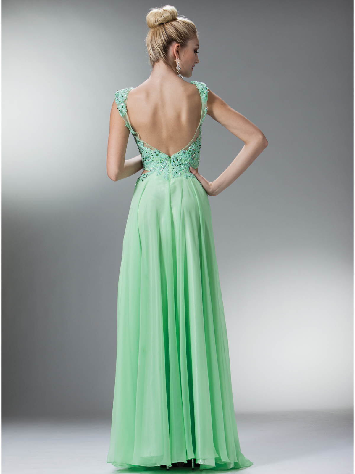 This special occasion gown is perfect to wear as a prom dress; it’s youthful, fun, and fabulous. Composed of lace and organza, this two piece ensemble boasts a flowing, skirted bottom and an illusion top. Lace lines the decolletage and bust beautifully, while its high fashion cut allows you to playfully expose your mid-drift. -Approx. 60 inches from shoulder to hem. -Fully lined. -Polyester. -Imported.