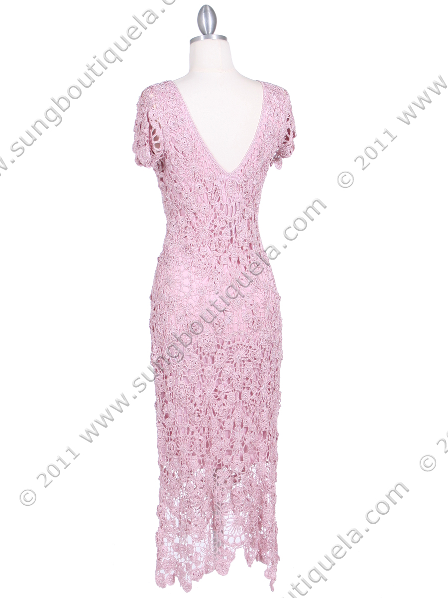 • 12959 Pink Flower Crochet Dress - Pink, Back View Medium
