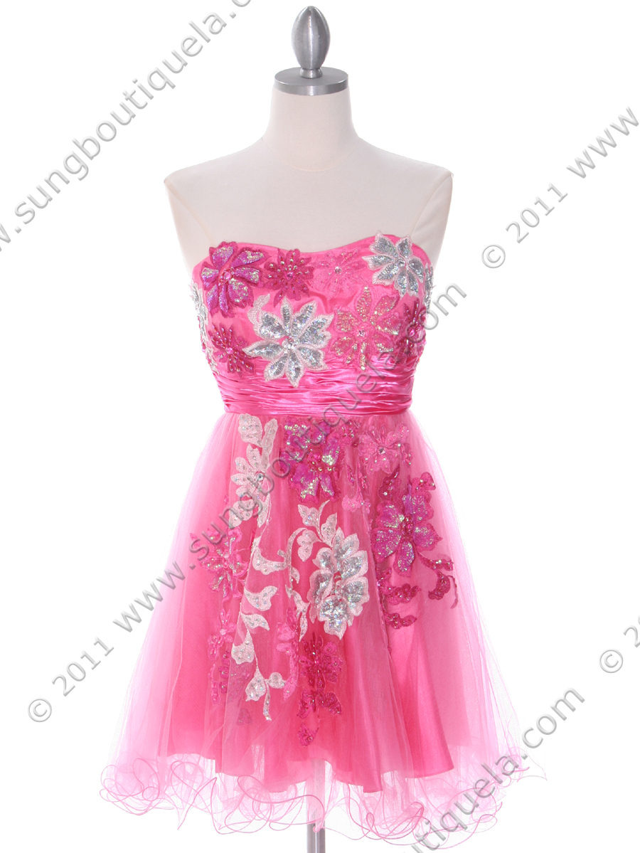 This sensational strapless homecoming dress features beautiful floral embroidery that details the bodice. Sparkling sequins follow the flower petals. Layers lace with wire-edge trim skirt finishes the fun and sexy look. - Matching shawl included. - Back center zipper. - Built in cup. - Approx. 26 in. from underarm to hem. - Fully lined. - 100% polyester. - Imported.