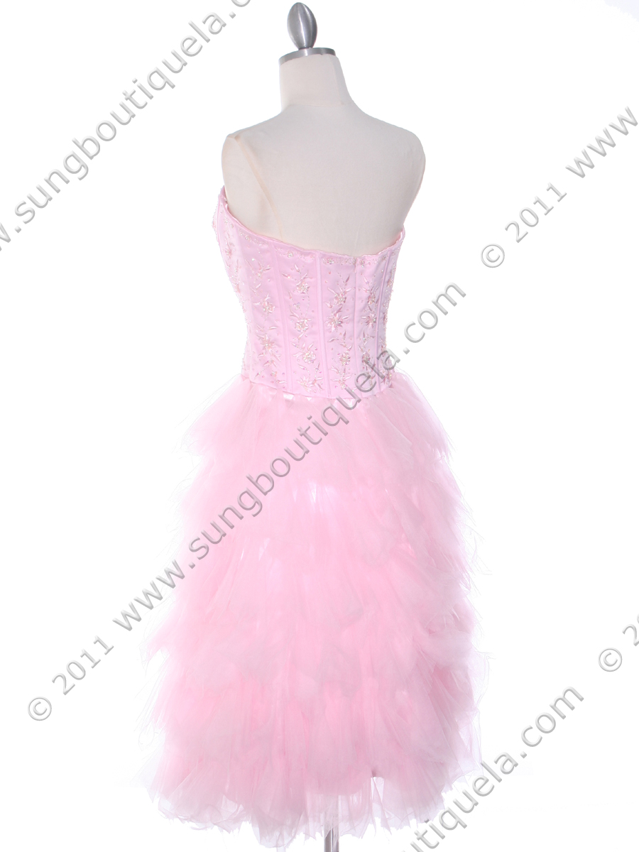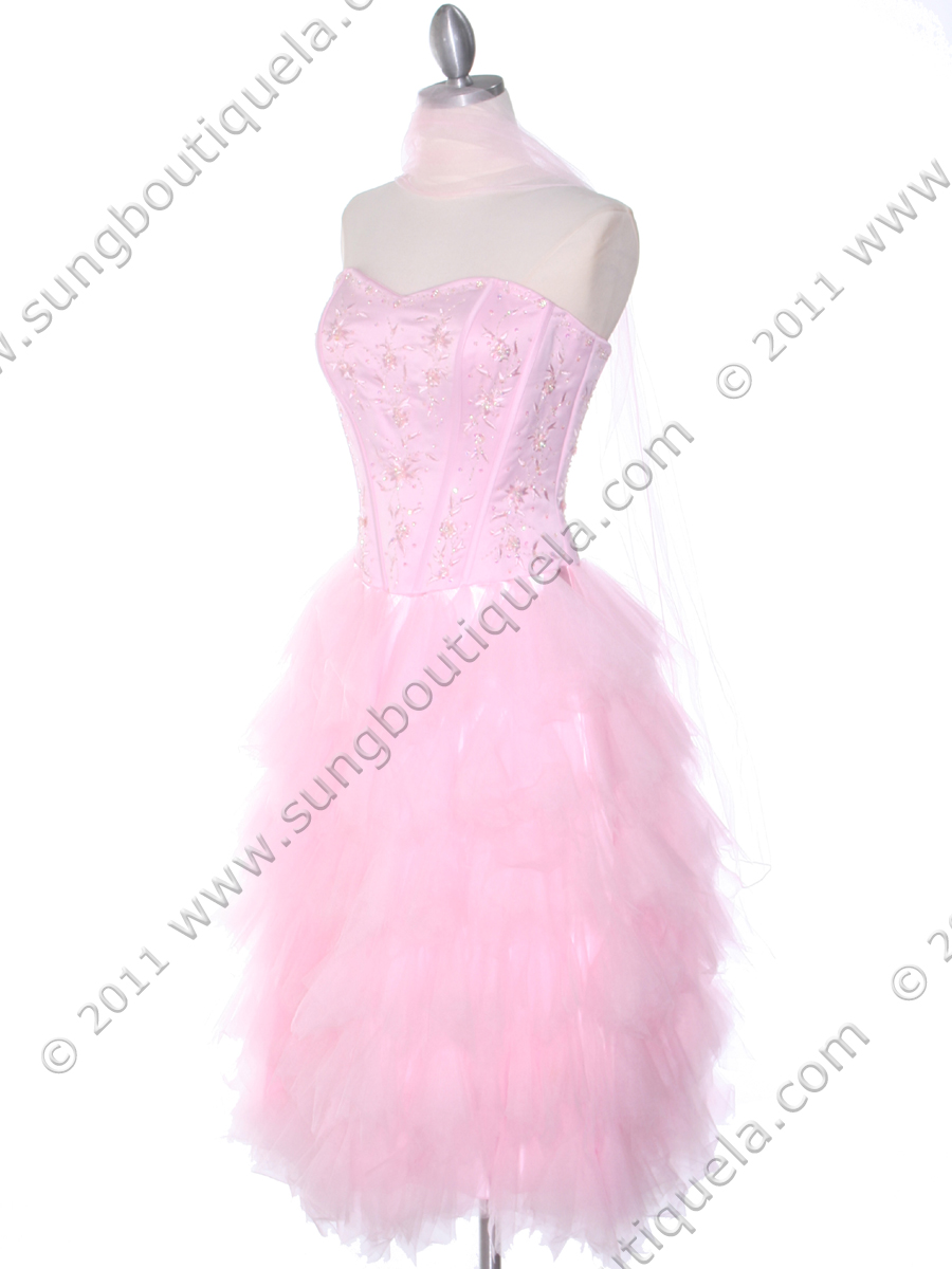 The beautiful strapless homecoming dress features sweetheart neckline with beautiful embroidery and beads detail the corset-like bodice. Sheer tiered skirt finishes the look. - Matching shawl included. - Side zipper. - Padded bodice. - Approx. 38.5 in. from underarm to hem. - Fully lined. - Polyester. - Imported.