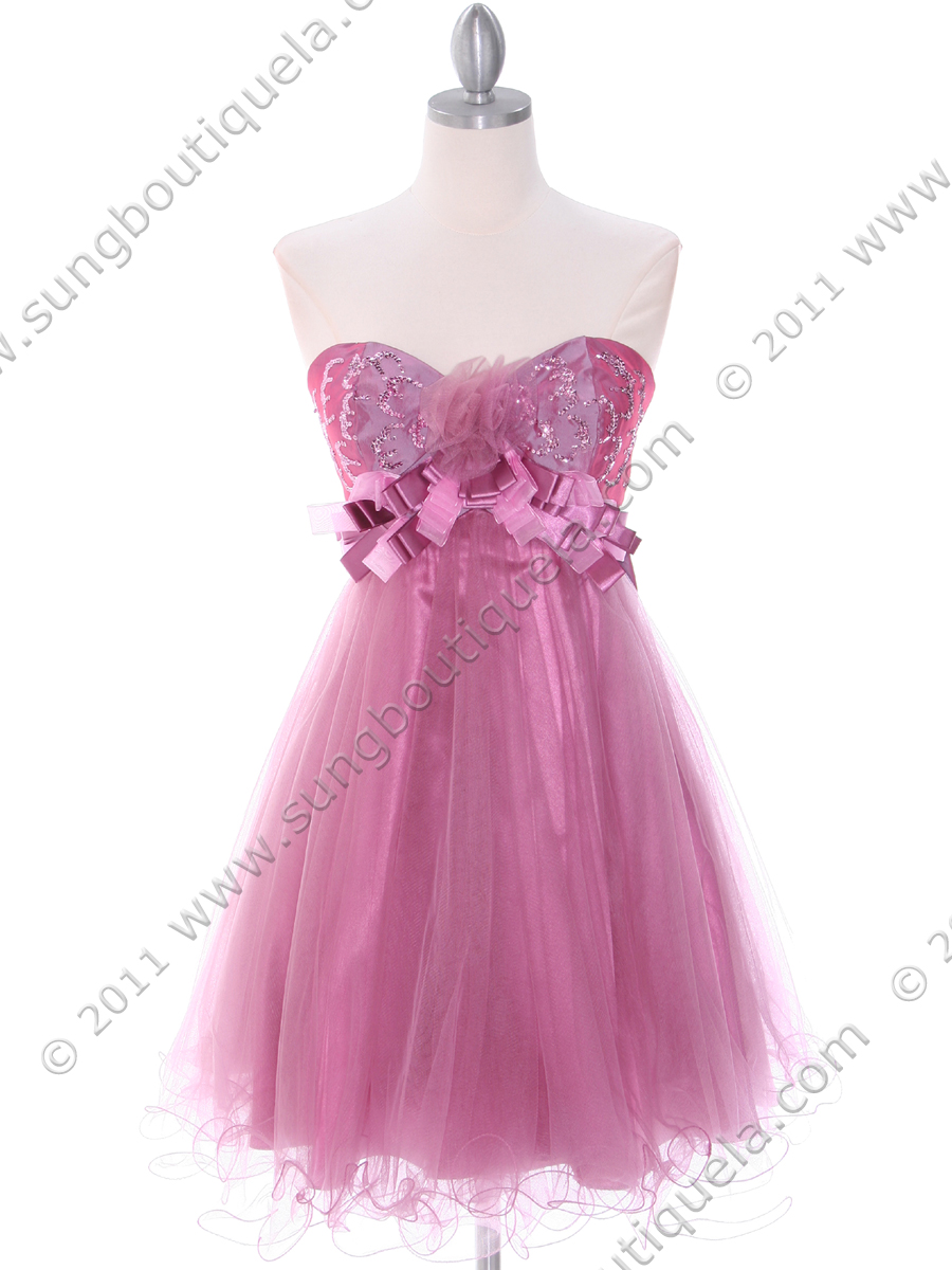 This fun and flirty prom dress features sparkling sequins detail the bodice and beautiful rosette adorns the front. Removable large bow on the back finishes this fantastic look. - Matching shawl included. - Back zipper. - Built in cup. - Approx. 28 in. from the center front. - Fully lined. - Polyester. - Imported.