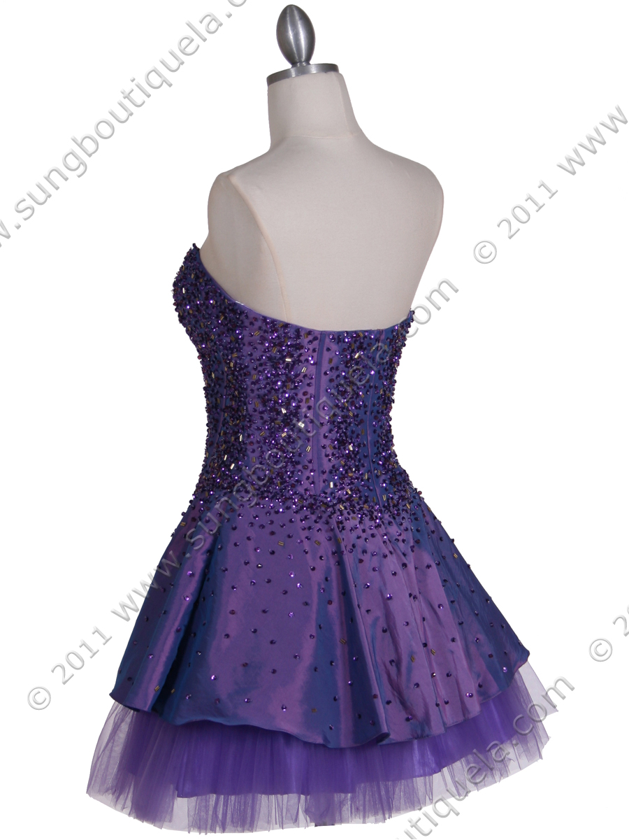 • 1035 Purple Beaded Party Dress - Purple, Back View Medium