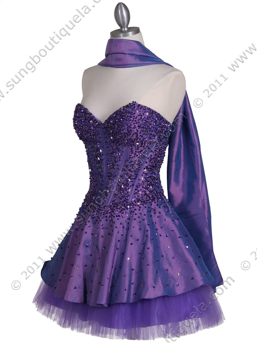 • 1035 Purple Beaded Party Dress - Purple, Alt View Medium