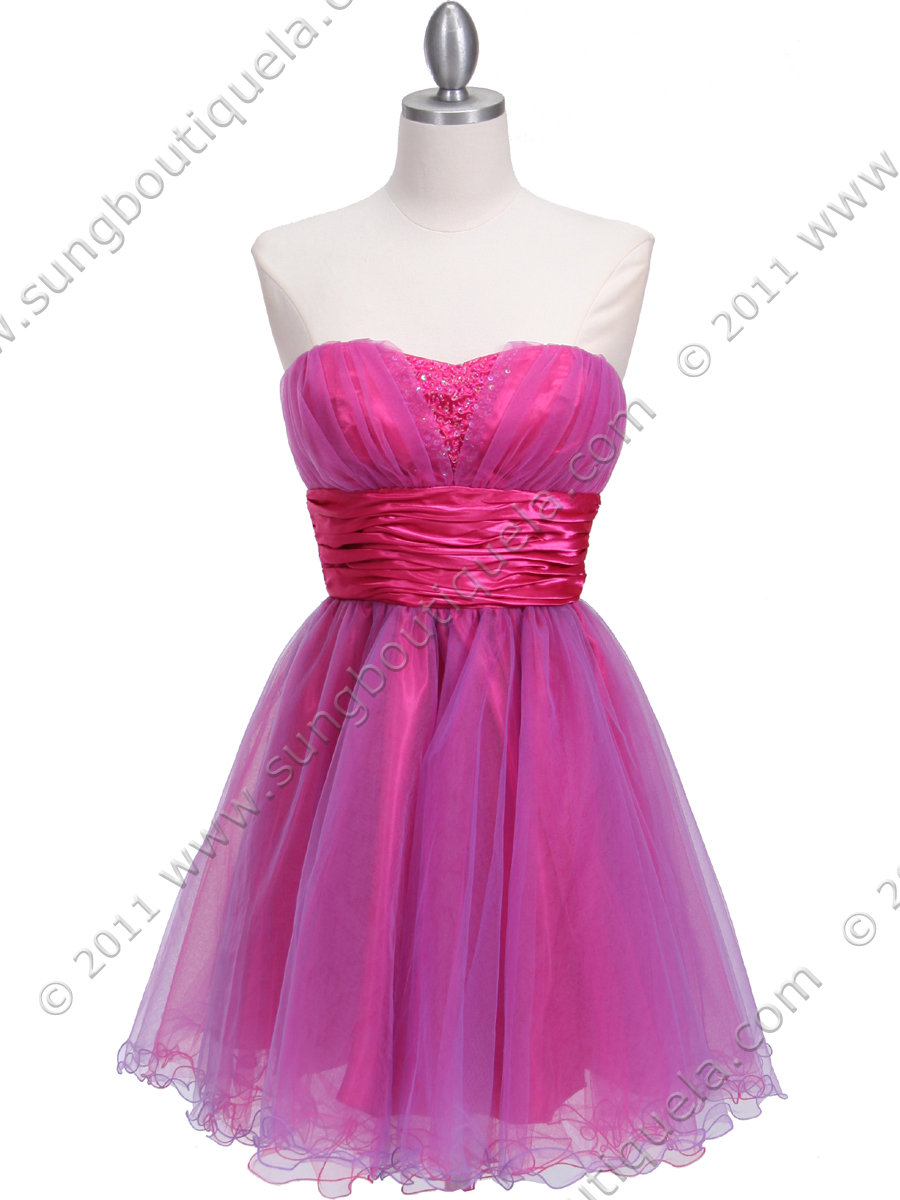 This stunning strapless cocktail dress features sweetheart neckline with sash adorns the empire waist. Pink and yellow lace with wire-edge trim skirt finishes the fun and sexy look. - Matching shawl included. - Back center zipper. - Built in cup. - Approx. 27 in. from underarm to hem. - Fully lined. - 100% polyester. - Imported.