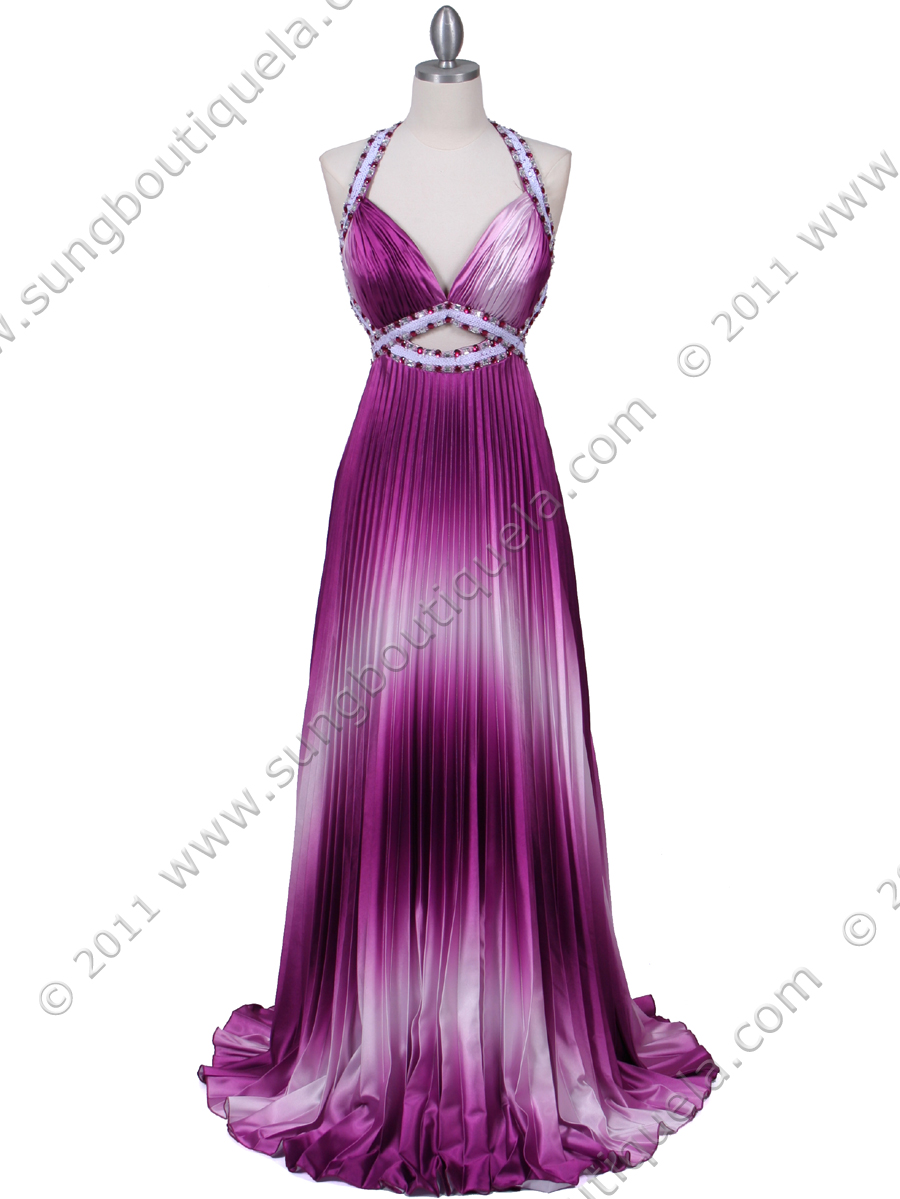 • 2126 Purple Pleated Prom Evening Dress - Purple, Alt View Medium