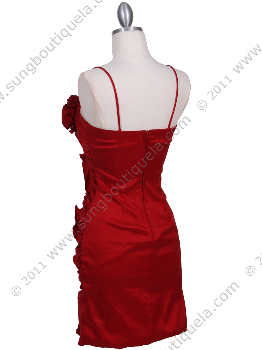 This sexy stretch taffeta cocktail dress features spaghetti straps with simple neckline. Beautiful rosettes and ruffle detail the well fitted dress. - Matching shawl included. - Side zipper. - Approx. 31 in. from shoulder to hem. - 100% polyester. - Imported.