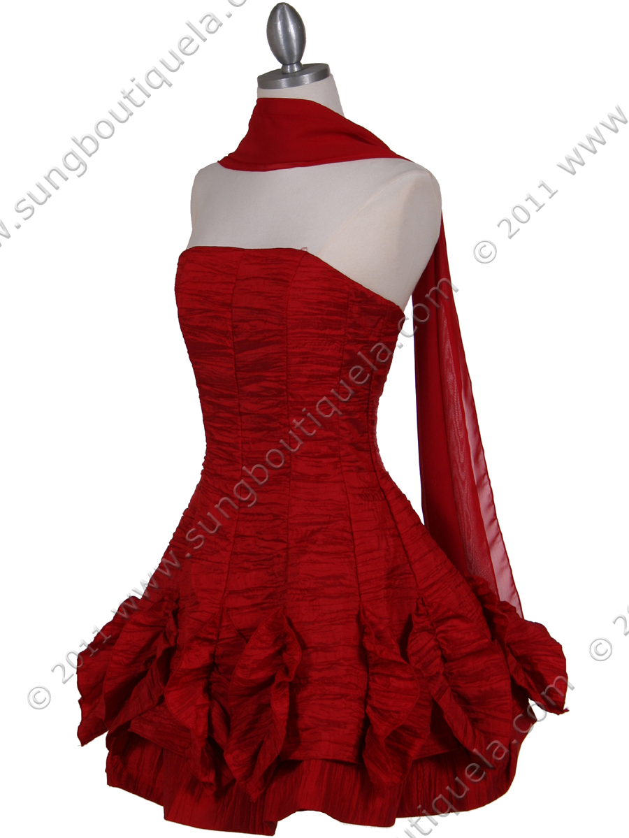 This beautiful taffeta party dress features simple neckline structured with boning for a flattering fit. Flirty skirt with tulle underneath for extra volume finishes the look. - Matching shawl included. - Back center zipper. - Built in Cup. - Boned bodice for corset-like support. - Approx. 25 in. from underarm to hem. - Fully lined. - 100% polyester. - Imported.