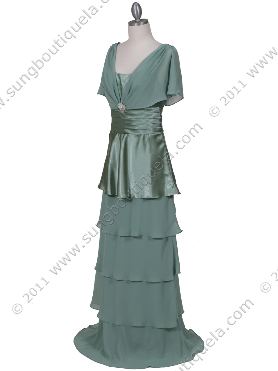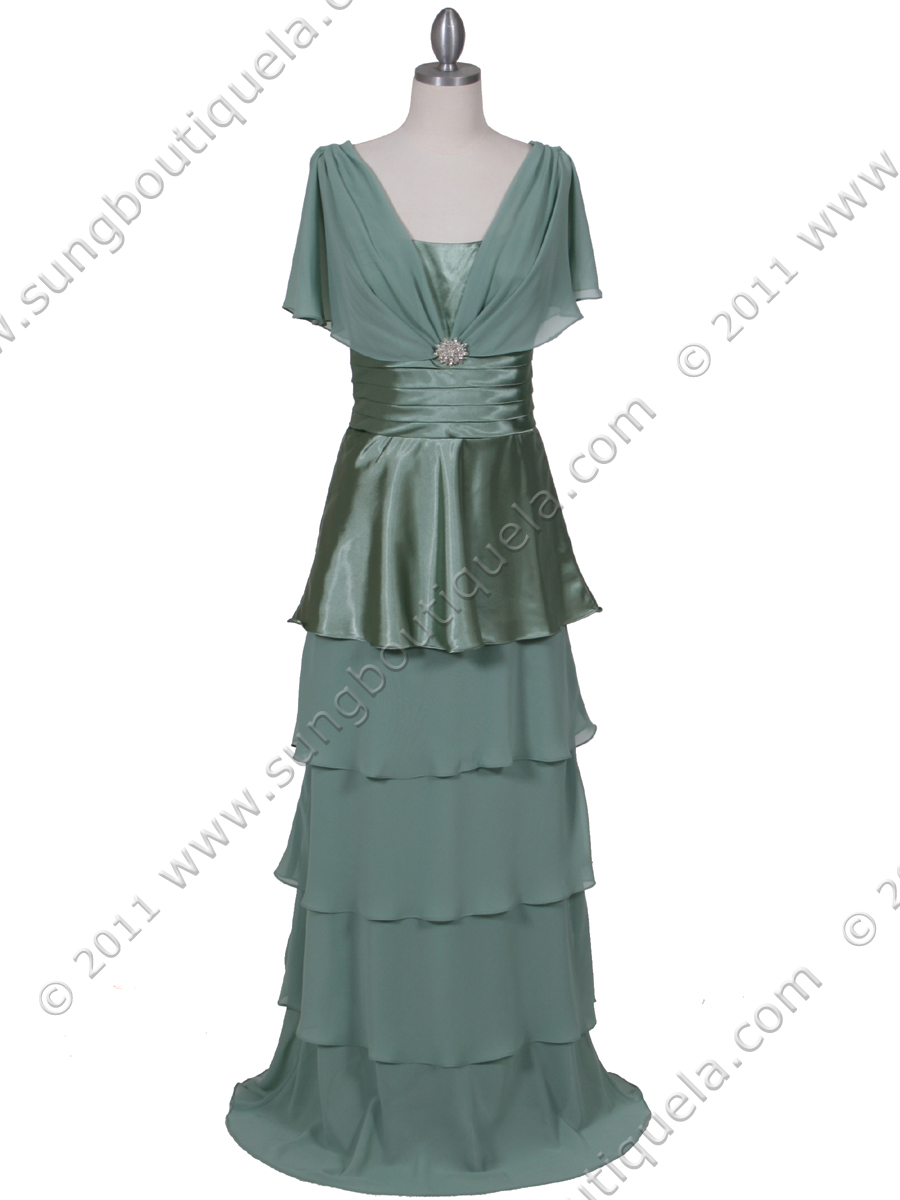This beautiful evening dress is styled with a chiffon bodice overlays charmeuse for a peekaboo effect above tiers of chiffon evening dress. Back zipper. Imported. 100% polyester.