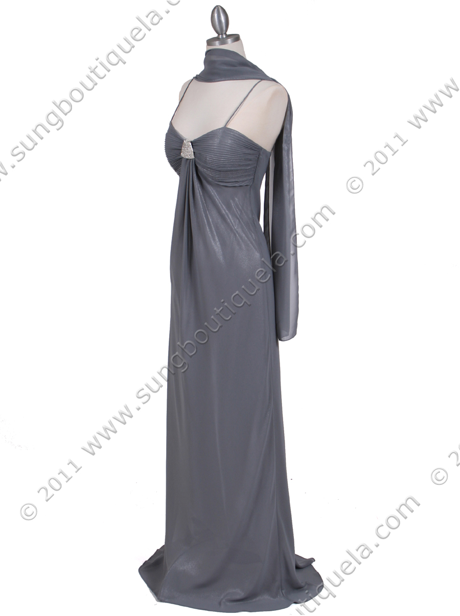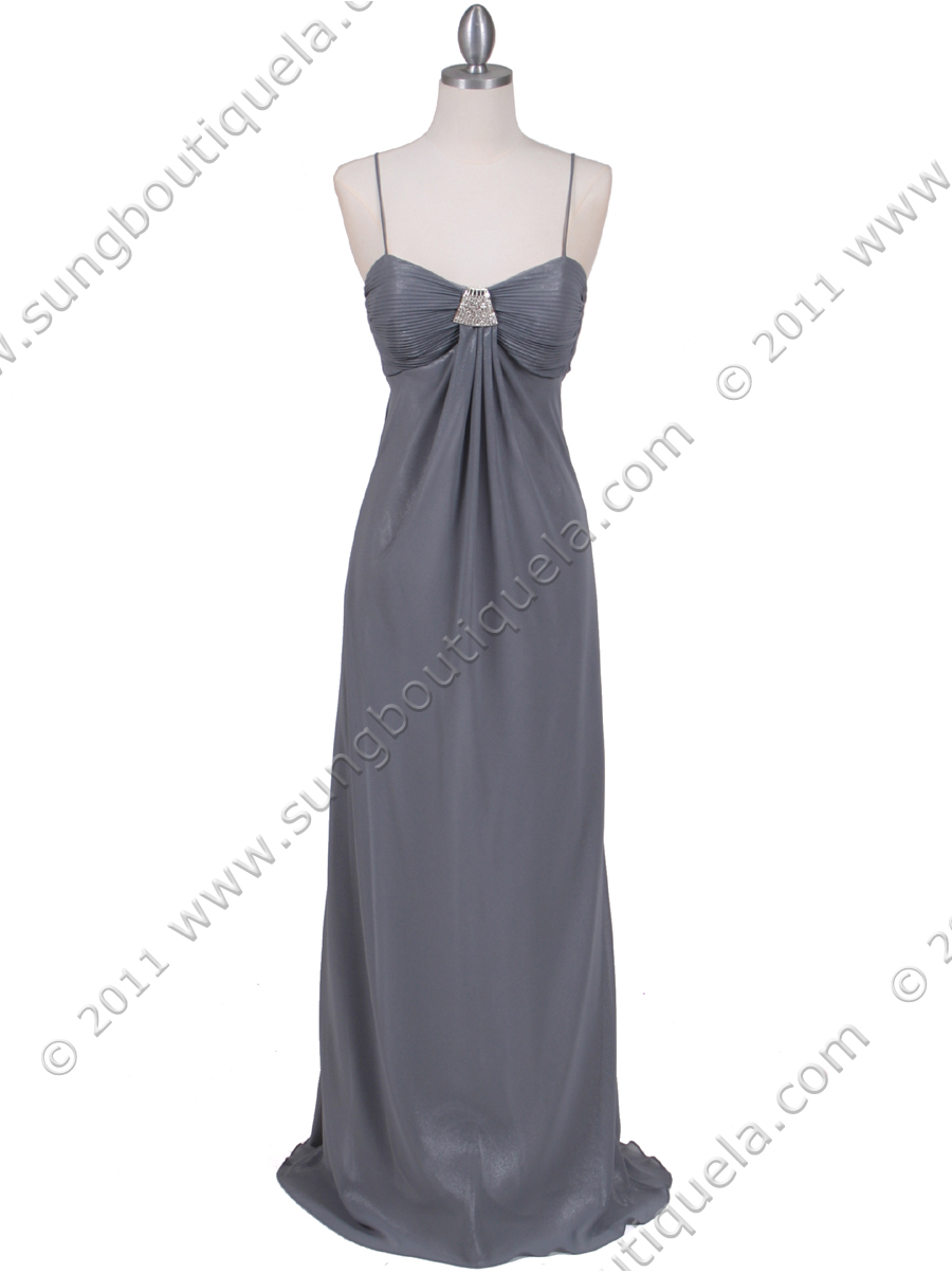 The beautiful light weight shimmery chiffon evening dress features spaghetti straps with sweetheart neckline. Shirred bust with decorative metallic pin adorns the front. Classic and elegant. Chiffon lining; slip-on; no zipper. Matching shawl included. Made in USA; 100% polyester.