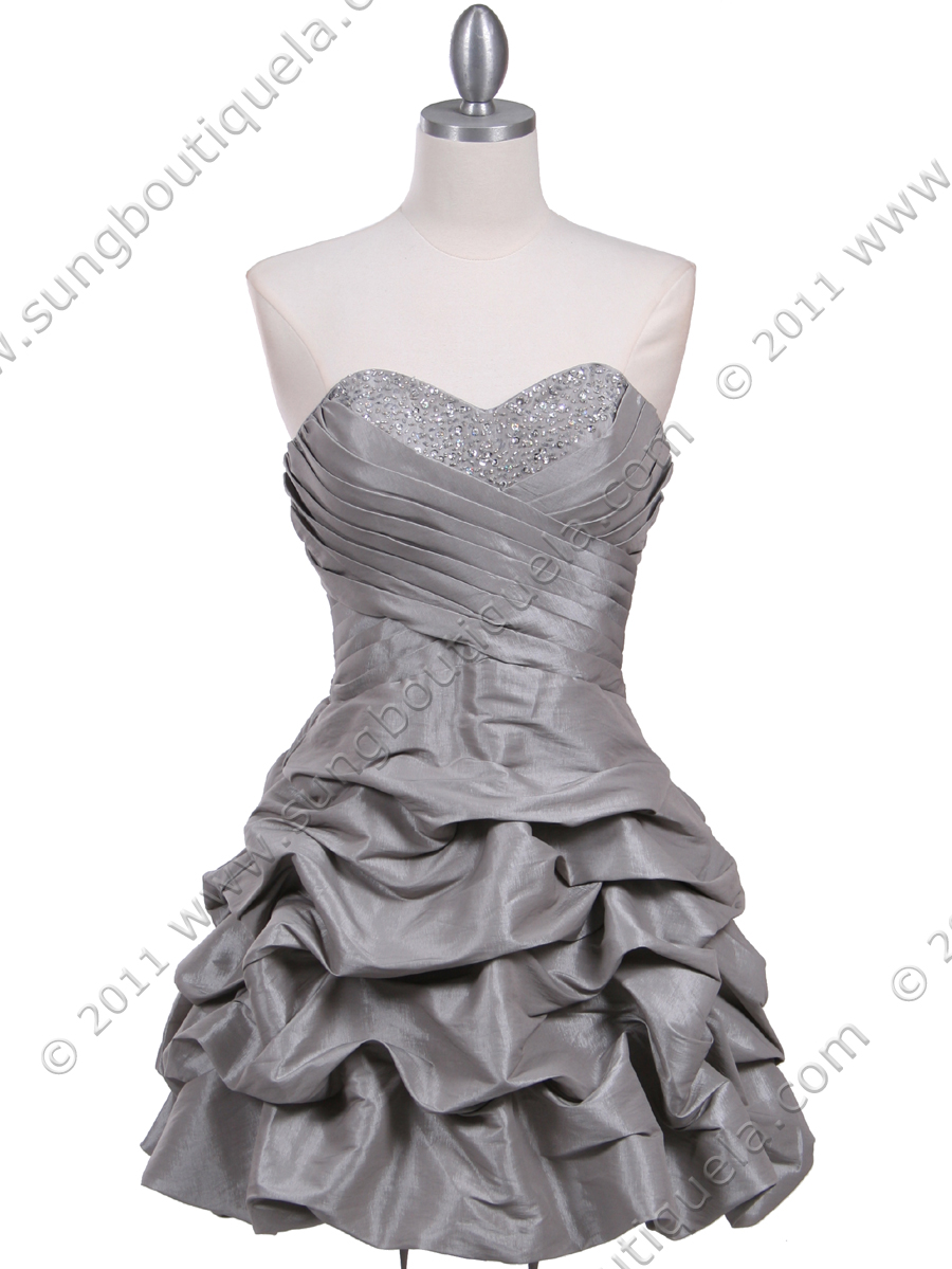 This beautiful taffeta strapless cocktail dress features sparkling sequins and beads adorn the sweetheart neckline. Pleated bodice with crisscross back strap ensures the perfect fit. The bustled skirt finishes the look. - Matching shawl included. - Approx. 27 in. from underarm to hem. - 100% polyester. - Imported.