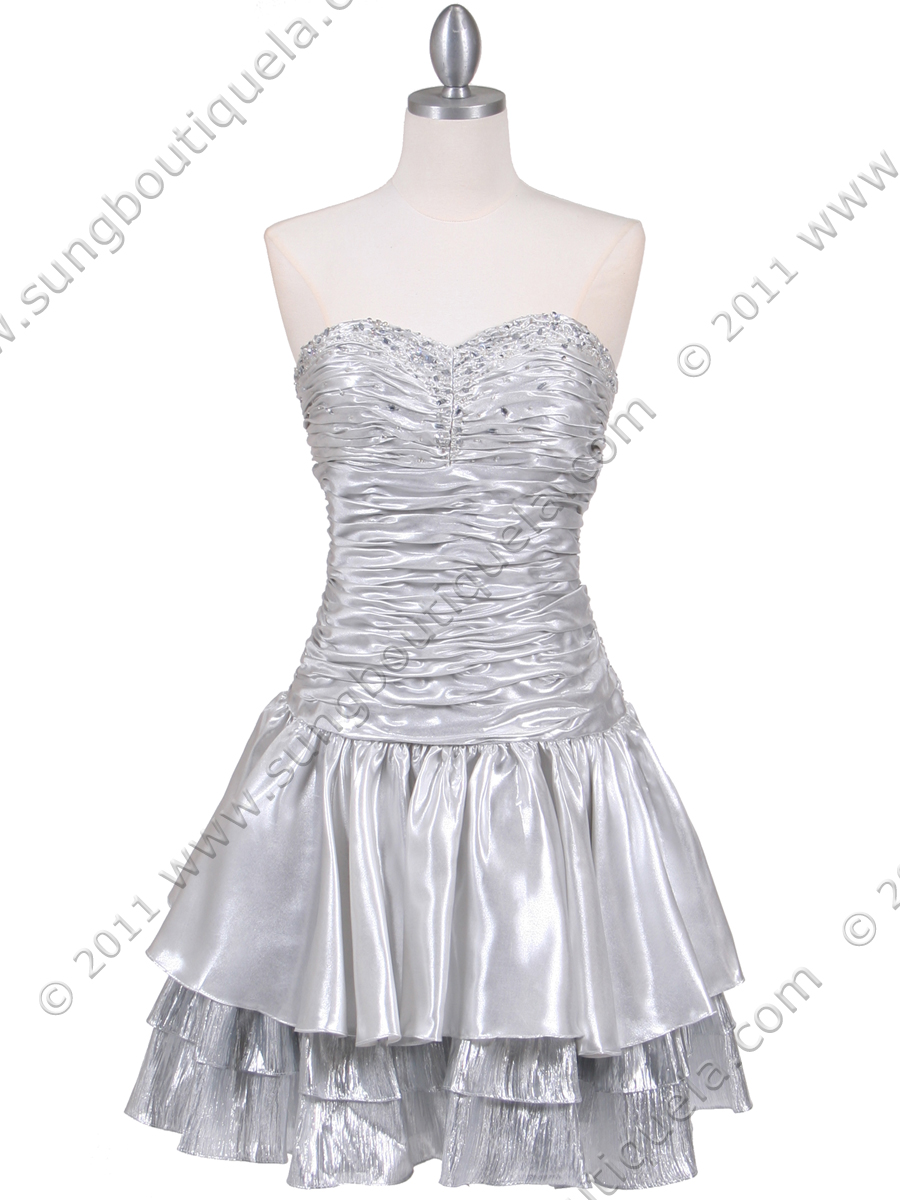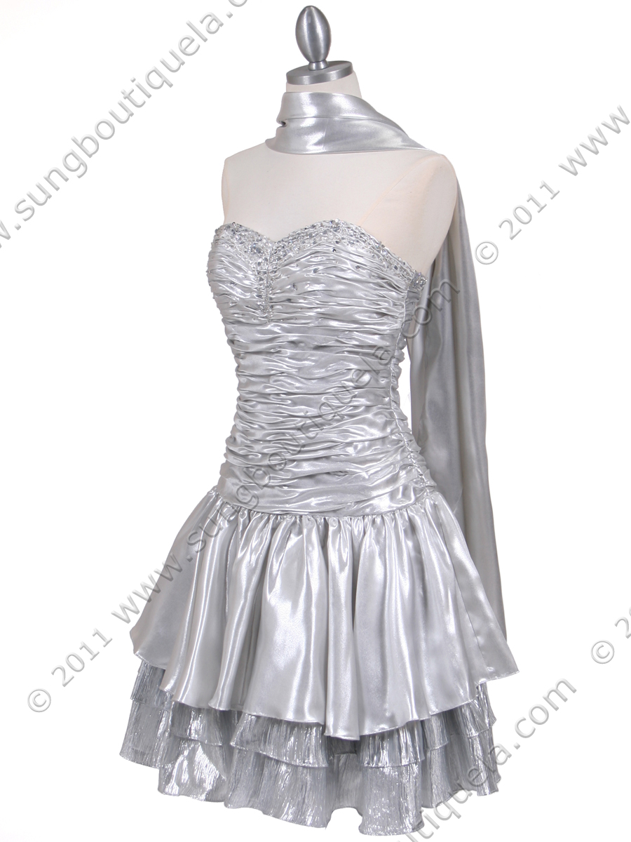 This beautiful cocktail dress features sweetheart neckline with sparkling sequins and beads adorn the front. Ruched bodice and tiered ruffle skirt finishes the look. - Matching shawl included. - Back center zipper. - Padded bust. - Approx. 29 in. from underarm to hem. - Fully lined. - 100% polyester. - Imported.